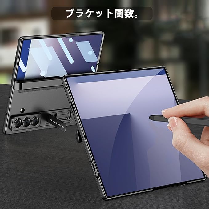 Galaxy Z Fold7ケーススタンド機能対応:Galaxy Z Fold7ケースを付けでテーブルに置くと、スタンドに機能対応、片手で携帯を操作できまして、使用が便利です。