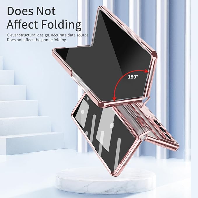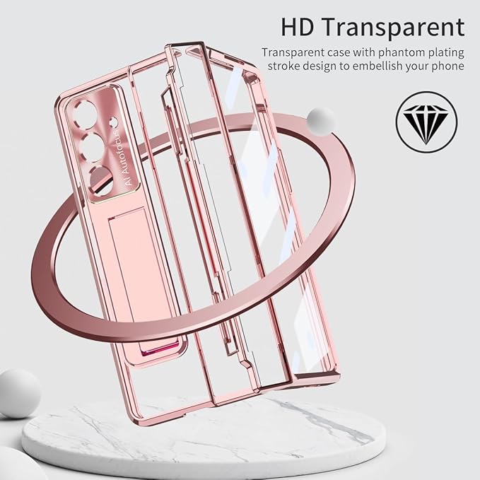 【Galaxy Z Fold7専用】手帳型 透明PCケース 3D電鍍フレーム 360度防護 内蔵スタンド ワイヤレス充電対応 薄型 軽量 強化ガラス製外画面保護フィルム ヒンジ保護カバー レンズ保護 キラキラ 折り畳み 携帯 スマホ 可愛い 面白い かわいい おしゃれ 人気 耐衝撃 滑り防止 Beautycatcher - バラの金 | KAZESHOP