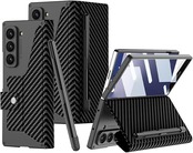 NINKI適応Galaxy Z fold 7 ケース Sペン収納 カード収納 レザー革+PCフレーム 耐衝撃 スクラッチ保護 ワイヤレス充電対応 ギャラクシー フォールド 7 5G スマホ カバー(ブラック・ファイバー模様) | KAZESHOP