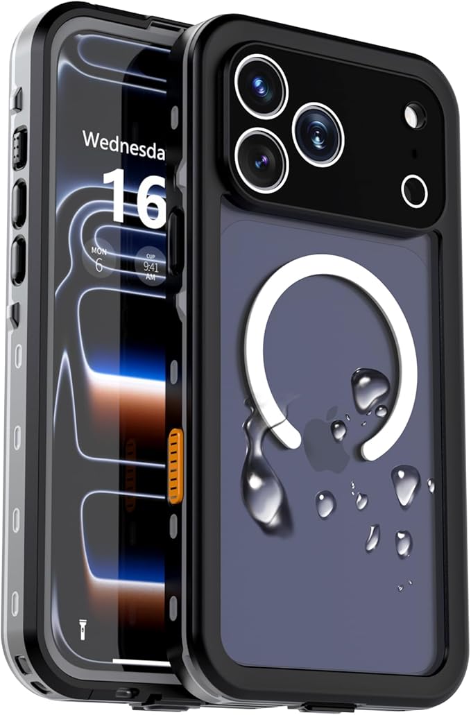 【防水防塵・MagSafe対応】iPhone 17 Pro Max 用 ケース 防水 衝撃吸収 水中撮影対応 Qi充電対応 顔認証対応 全面保護 防雪 防塵 滑り止め 手持ちやすい 頑丈 耐衝撃 ストラップ付き 雨の日、お風呂など適用 防水ケース(6.9インチ) | KAZESHOP