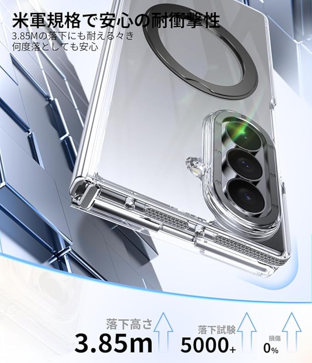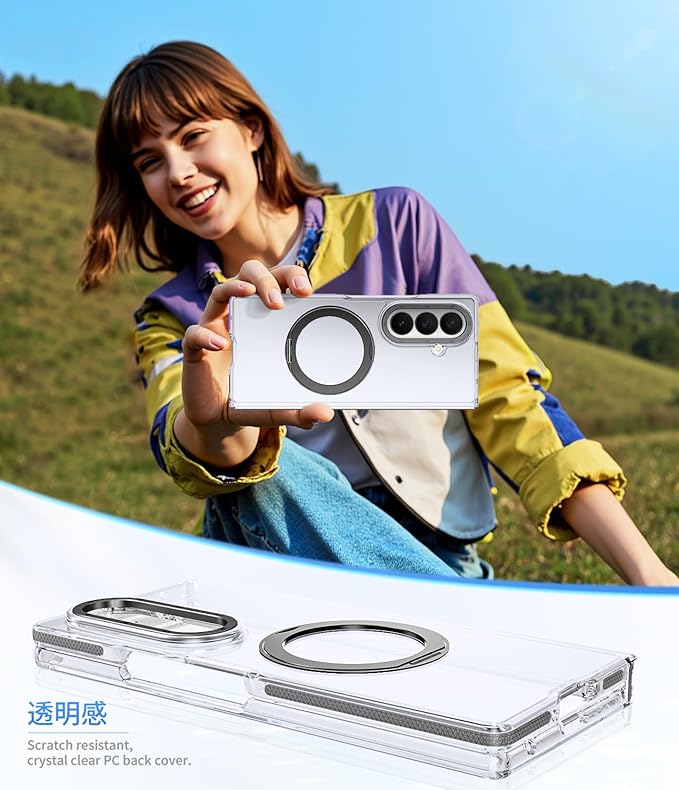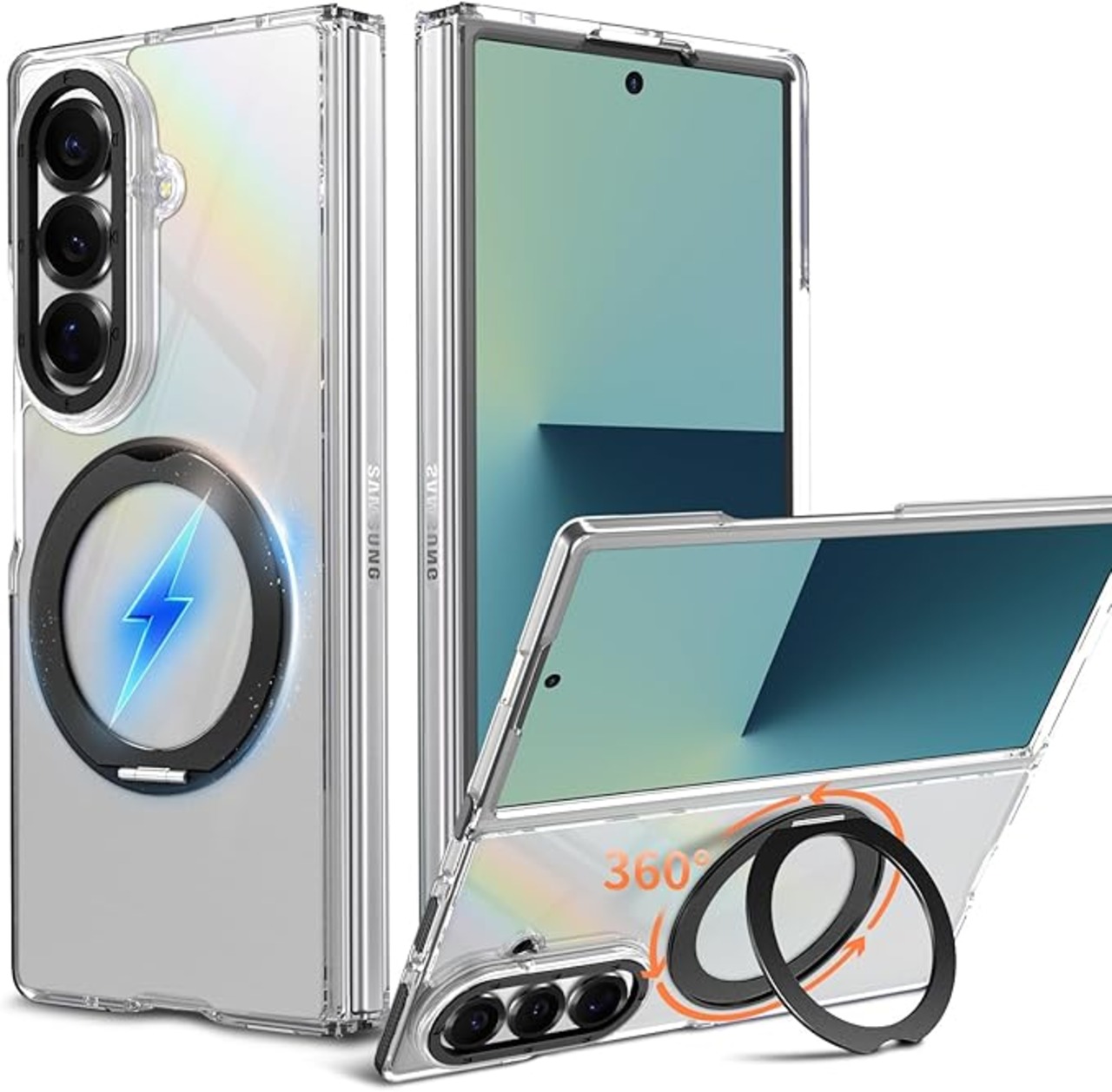 Galaxy Z Fold 7 用 ケース 強磁力リング マグネット 耐衝撃 米軍MIL規格 クリア ワイヤレス充電対応 360 回転スタンド 縦横両対応 滑り止め 擦り傷防止 Galaxy Z Fold7 用 カバー クリア透明 黒 N519-zfold7-01 | KAZESHOP