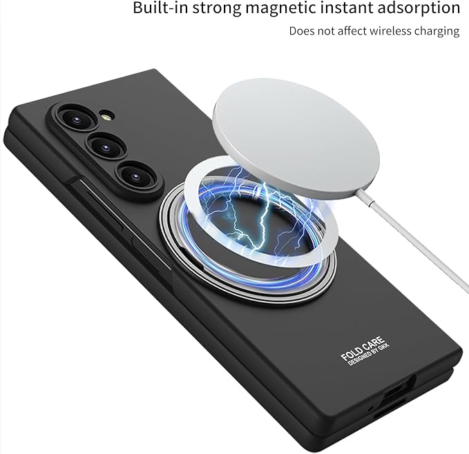 【Galaxy Z Fold7専用】手帳型 鋼化ガラス一体型 磁気回転スタンド付 360度防護 超薄軽量折りたたみケース ワイヤレス充電対応 レンズ保護 カバー マットの表面 指紋防止 折り畳み 面白い おしゃれ 携帯電話 落下防止 スマホ 人気 耐衝撃 Beautycatcher - 黒 | KAZESHOP