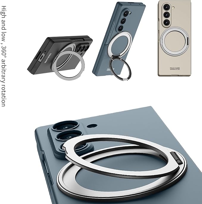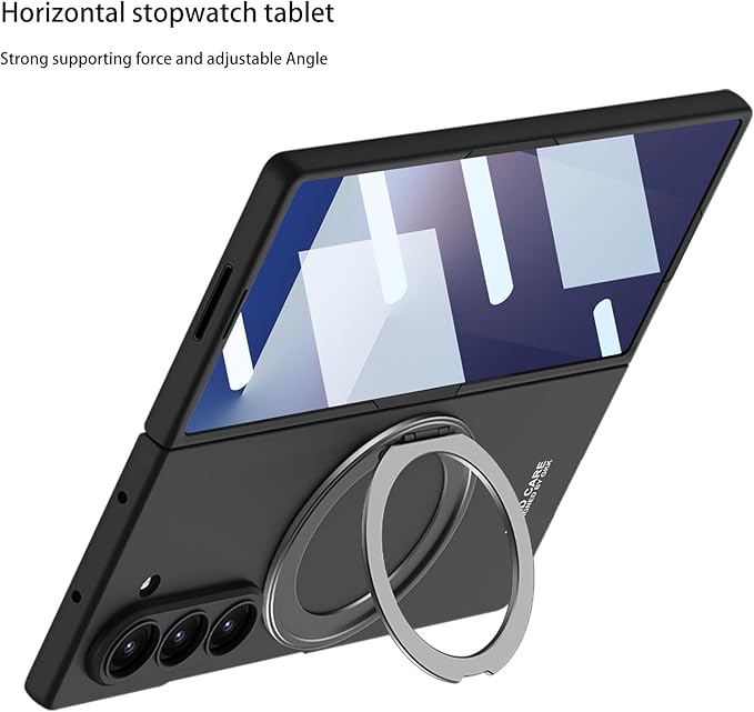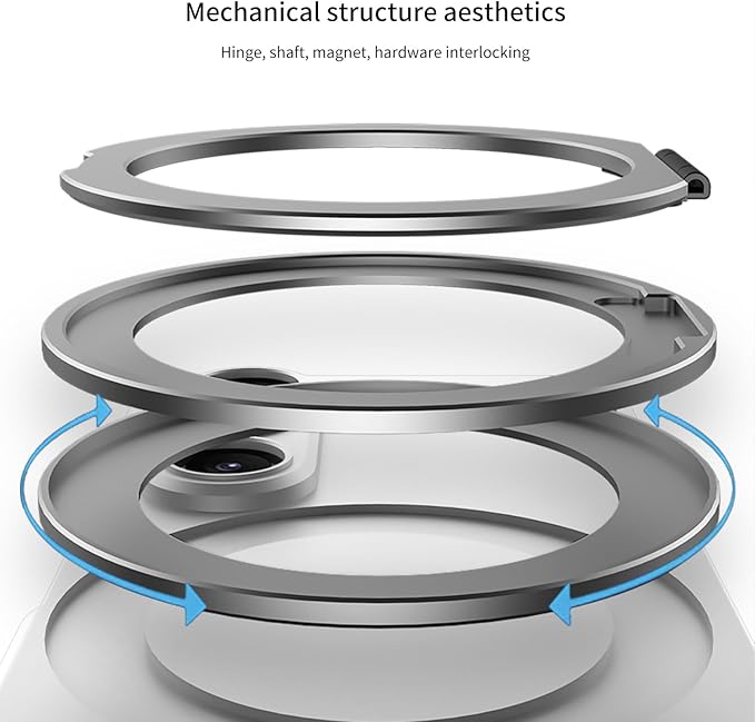 -【磁気回転マルチスタンド】【ワイヤレス充電対応】背面に完全隠蔽式磁気回転機構を内蔵。多関節設計により縦横どちらの視聴モードにも対応する自由角度調節を実現。強力磁気吸着機能が各種ワイヤレス充電デバイスとの互換性を確保。