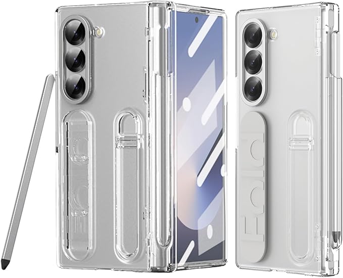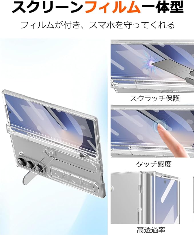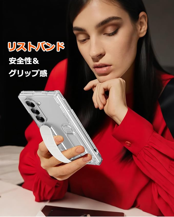 NINKI適応Galaxy Z Fold 7 ケース [SC-56F|SCG34] リストバンド PC製 ストラップ penホルダー ペン付き キックスタンド付き サムスン ギャラクシー フォールド 7 スマホ ケース (クリア) | KAZESHOP