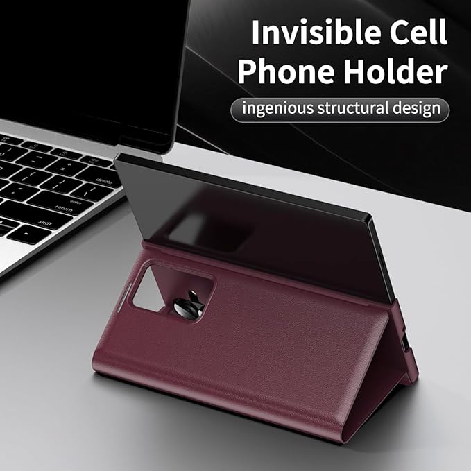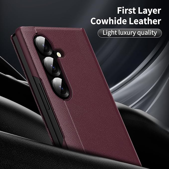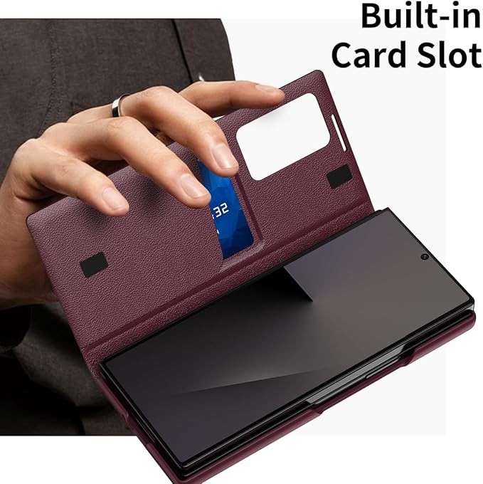 Galaxy Z Fold7専用 PUレザーケース 手帳型 スマートディスプレイ+カード収納 軽量 薄型 ワイヤレス充電対応 ソフト 人気 面白い おしゃれ スマホ 指紋防止 TPUフレーム レンズ保護 耐衝撃 滑り防止 Beautycatcher - ワインレッド | KAZESHOP