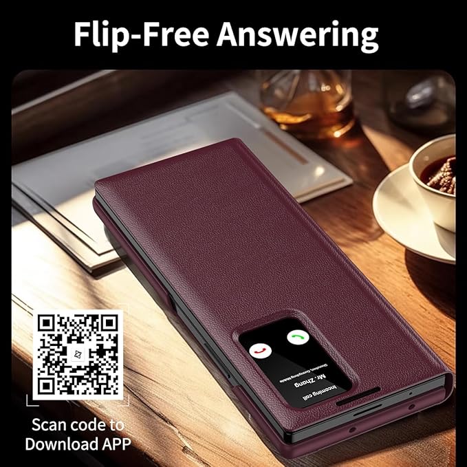 Galaxy Z Fold7のビジネススタイルを支える多機能ケース。専用アプリと連動するスマートディスプレイが蓋閉じ状態でも重要情報を表示し、内蔵ポケットでICカード2枚を収納可能。3層構造が通勤中の落下衝撃を吸収し、高密度PUレザー表面が擦れ傷を防止。ボタン操作や充電接続を妨げない薄型設計で、端末の美しいラインを保ちながら実用的な保護を実現します。 ※スマートビュー機能(画面表示・スリープ制御)の利用には、商品付属のQRコードから専用アプリをインストールいただく必要がございます。操作手順が複雑なため、取扱説明書を順番に確認しながら進めてください。また、アプリのインストール後は「バックグラウンドでの動作を許可」設定を有効にすることで初めて機能が作動します。