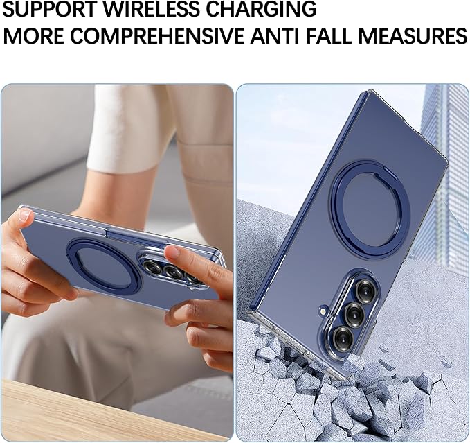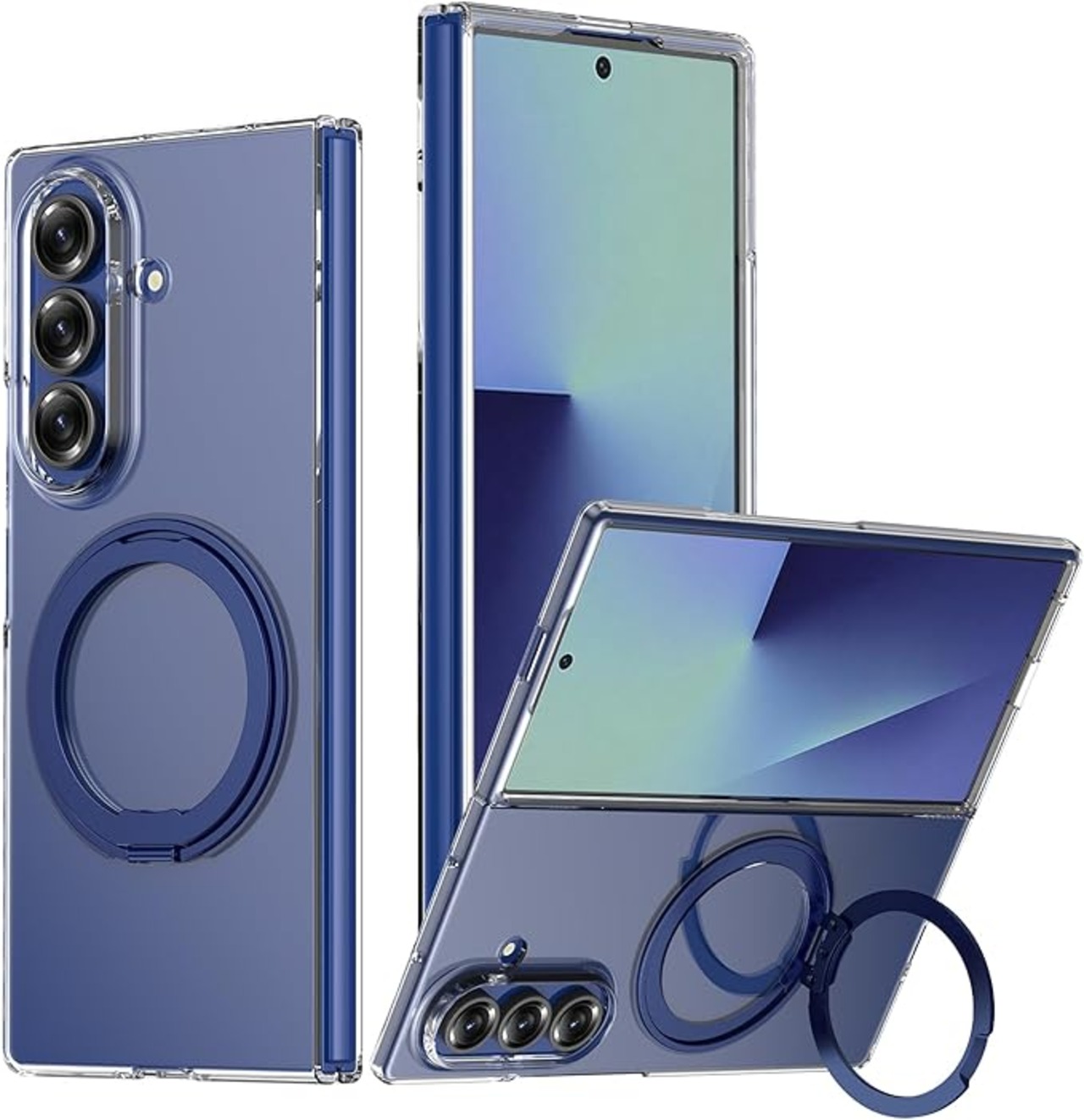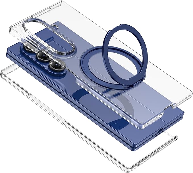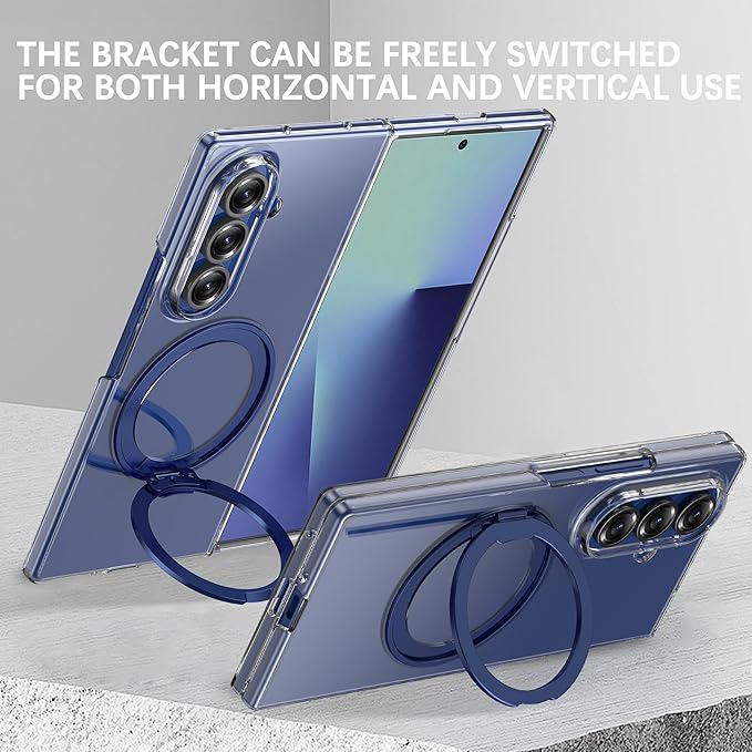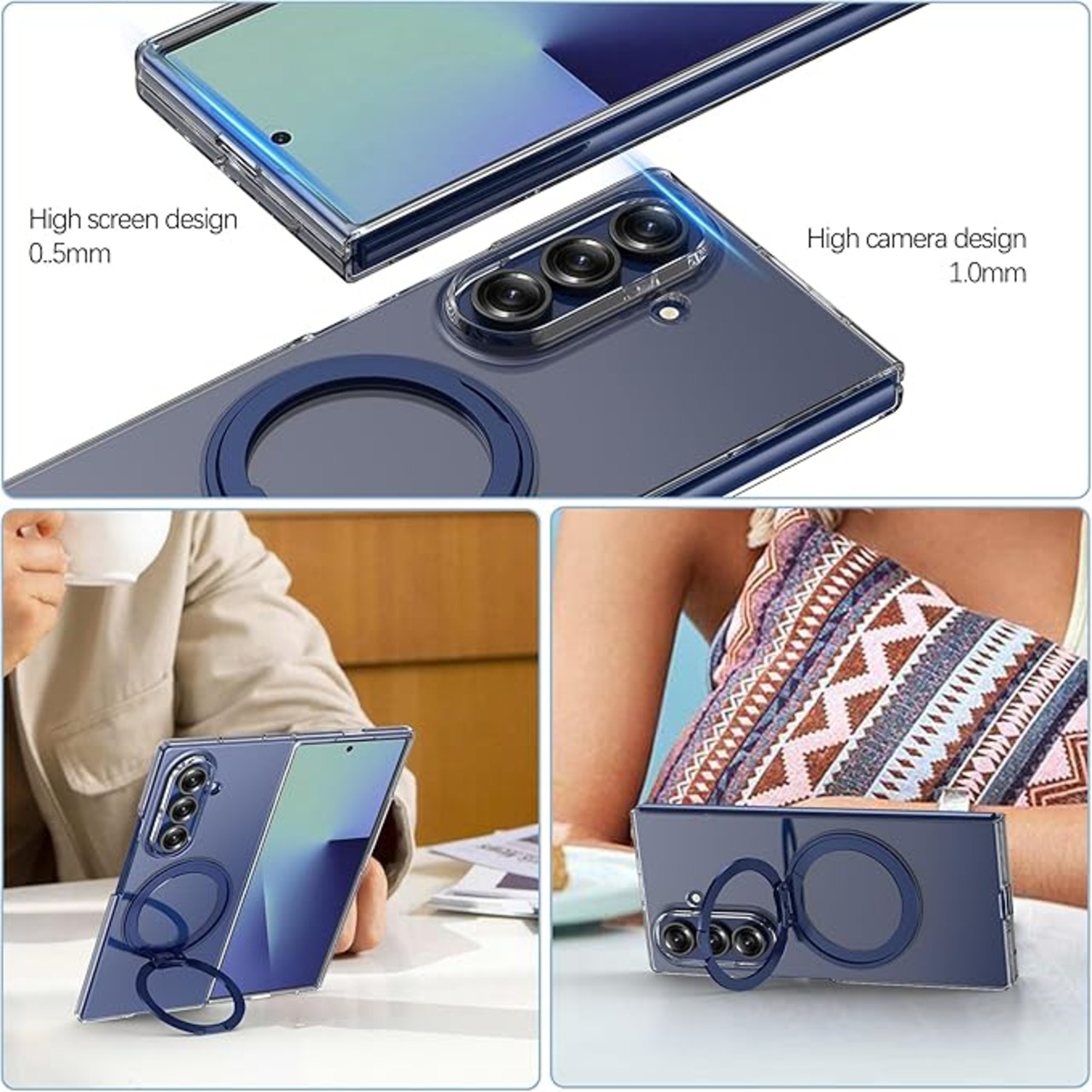 携帯スマホケース Galaxy Z Fold7専用超薄軽量透明 360度回転マグネットスタンド付き 磁気充電対応 全周囲保護 衝撃吸収 カバー UV強化加工 レンズ保護 キラキラ 折り畳み手帳型 豪華 可愛い 面白い おしゃれ 二層構造 フリップ 滑り防止 人気 反塵 個性 ユニーク - Beautycatcher - 青 | KAZESHOP