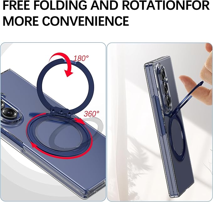 ✔【360度磁気スタンド】【多角度視聴】【ワイヤレス充電対応】金属製磁気吸着スタンドが360度自由な角度調整を可能にします。縦横いずれの向きでも最適な視聴位置を設定でき、折り畳むと背面に完全収納。内蔵磁気システムにより各種ワイヤレス充電器と完全互換性を確保します。