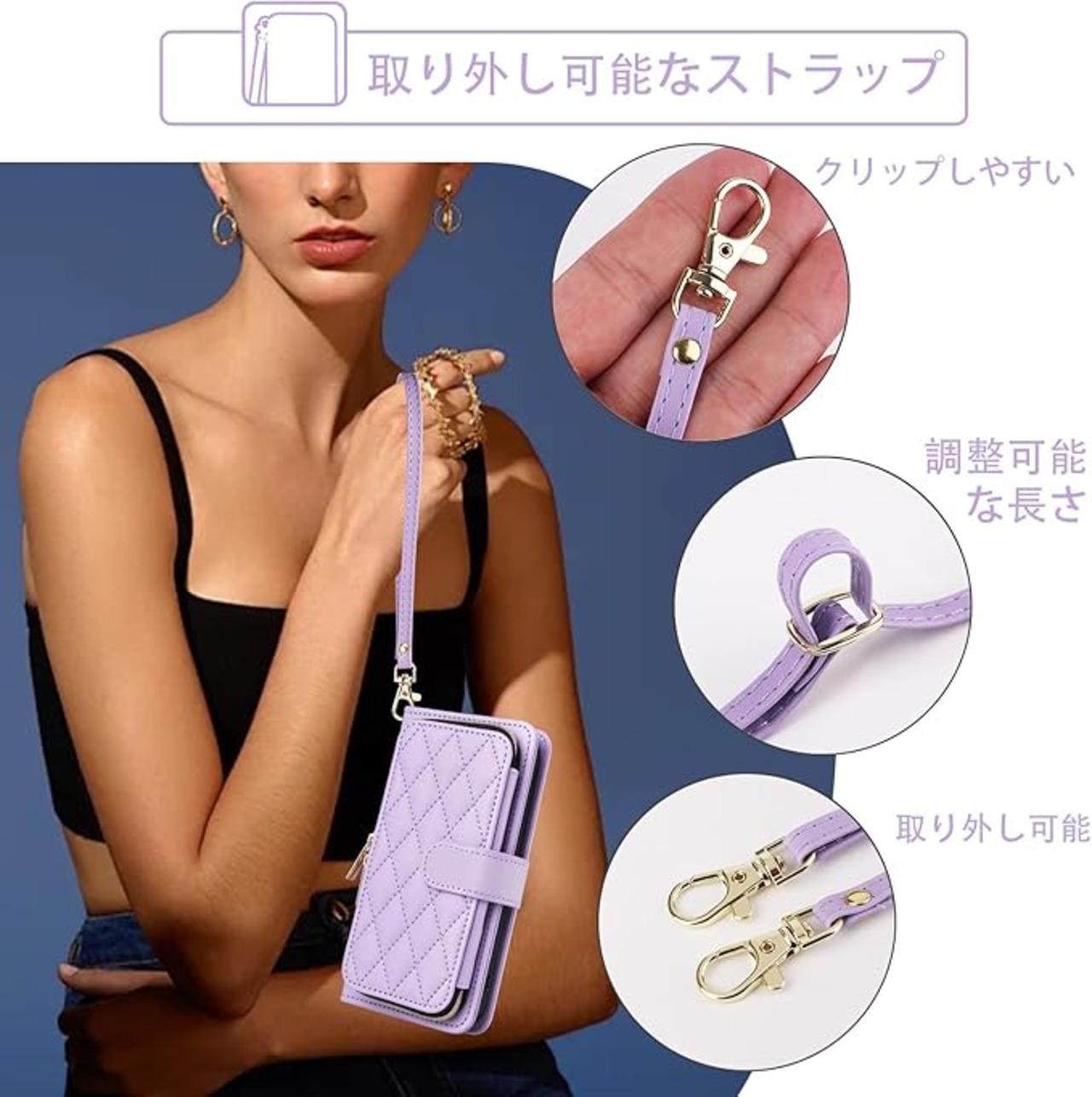Elisorli for Samsung Galaxy Z Fold 7 手首/ショルダーストラップ カードスロット ジッパー財布 豪華 PUレザー スタンド ための 携帯電話のカバー 持つ ZFold Z7 G Fold7 7Z ウォレットケース しい 大人人気 お洒落 ケース 手帳型 スマホケース カバー スマートフォン 耐久性 耐衝撃 フラップ ストラップホール カード収納 女 むらさき | KAZESHOP