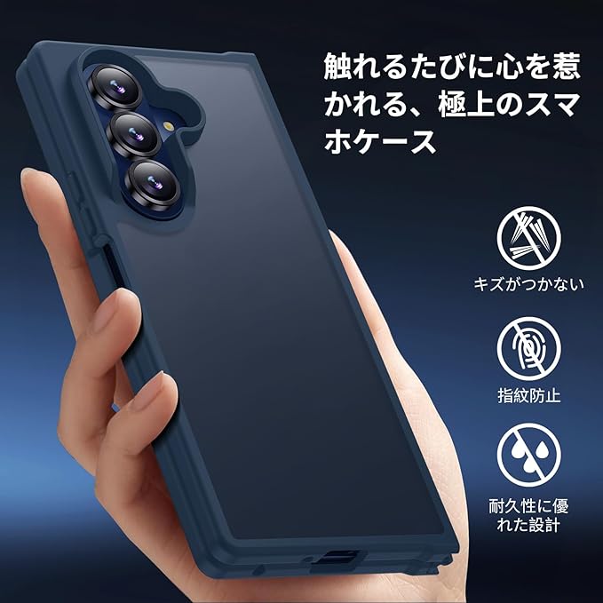 Aunote Galaxy Z Fold7 ケース マット半透明 米軍MIL規格 耐衝撃 耐久性 ワイヤレス充電 黄ばみなし 指紋防止 軽量 スマホケース Galaxyzfold7 ケース カバー ブルー | KAZESHOP