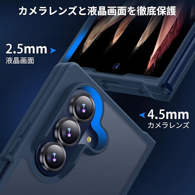 【カメラレンズ保護】Galaxyzfold7 ケースの特別に設計された背面がレンズ部分を少し凸起させ、地面に直接触れるのを防ぎます。これにより、レンズが傷や衝撃から守られ、鮮明な写真撮影ができ、大切な瞬間を守ります。