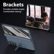 折りたたみスマートフォンの機構美を極限まで追求した次世代マルチプロテクションシステム。黄金分割比に基づくスタンド角度と独立可動式ヒンジ保護が利便性を革新。微隆起カメラガードと鋼化ガラス一体型設計が精密部品を守り、サテン調の親肌触りと超薄ボディがGalaxy Z Fold7を洗練されたスタイルで全天候防御します。