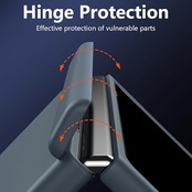 -【独立可動式ヒンジ保護】【耐久開閉設計】ヒンジ部に柔軟プロテクターを装備。多関節スムースメカニズムが自然な開閉動作を実現し、埃侵入防止用シールド層を内蔵。10万回開閉耐久テストをクリアした信頼性で繰り返し使用に耐える。