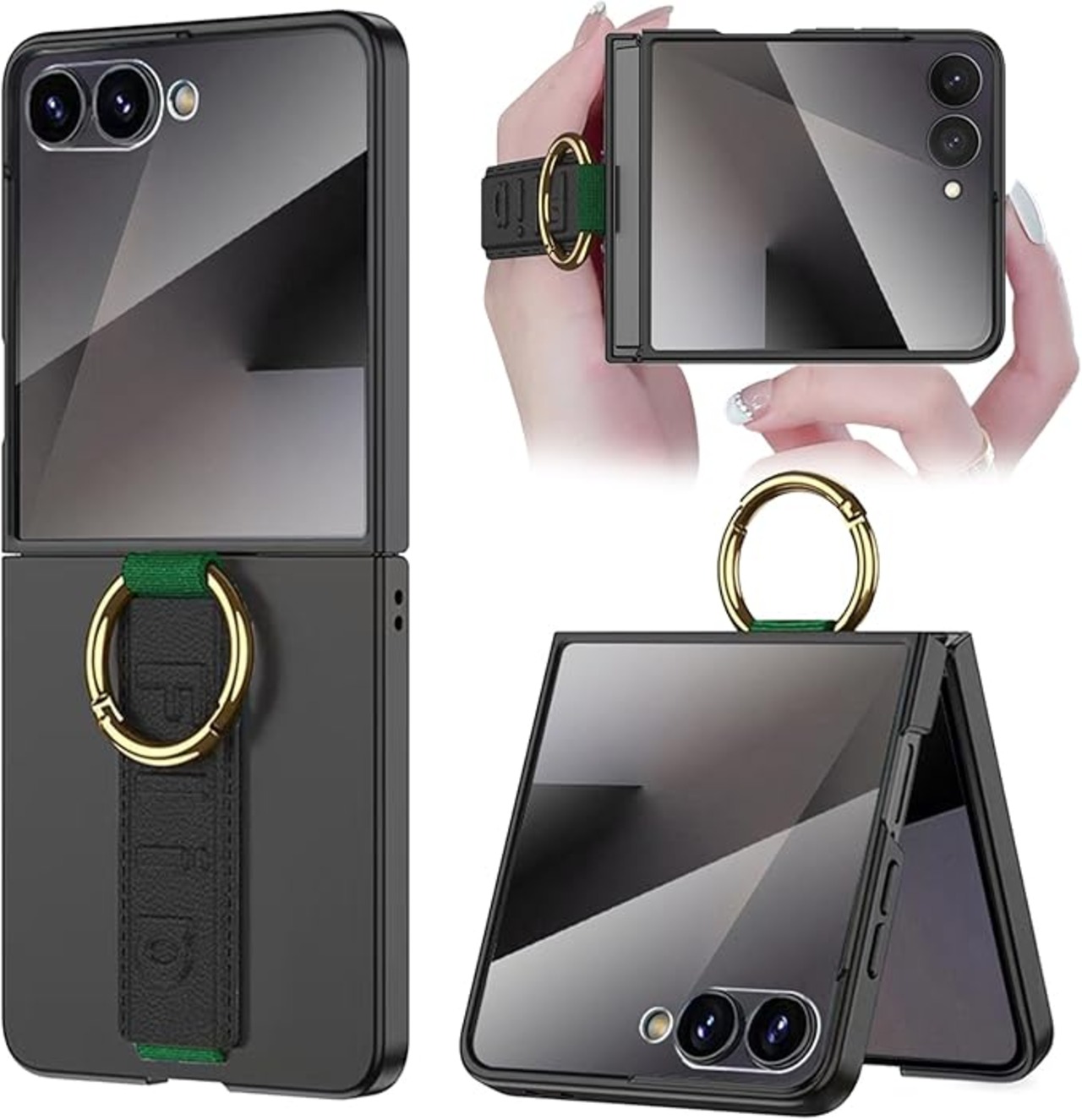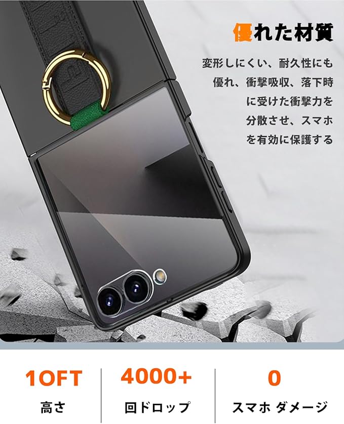 NINKI適応galaxy z flip7 ケース [SC-55F|SCG35] 格納式リストバンド リング付き 折りたたみ おしゃれ 男女兼用 人気 PC+弾力ナイロンレザー 液晶保護フィルム付き 純正 軽量 耐衝撃 スマホ一体型カバー galaxy フリップ7 ケース (ブラック) | KAZESHOP