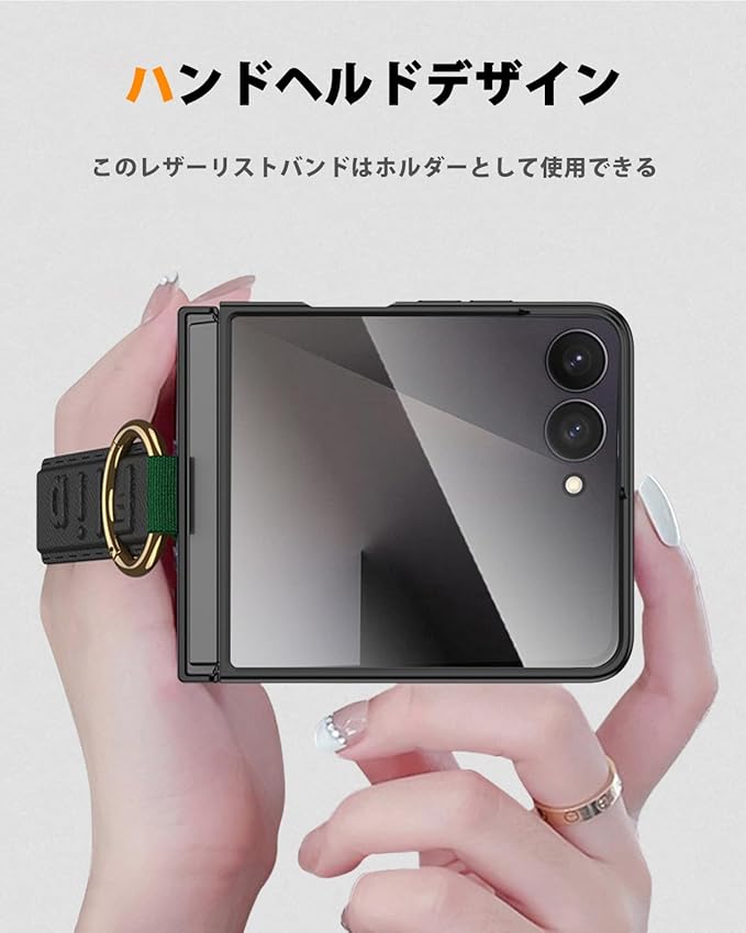 NINKIはスマートホン、スマートウォッチなどに関連のアクセサリーを専攻するブランド。商品の「美しく純真」と「特別さ」を追求する、日々努めてまいります。本製品は取り付けが簡単です。超薄型、軽量型を考慮して最も便利な設計になっております。これはほかの製品と違った特別なデザインであります。便利な格納式リストバンドで、片手で持ってスマホを操作しやすいです。ユニークで美しいパターンのデザインで、スマホの個性をさらに魅力的にします。おしゃれなコンパチブルGalaxy Z Flip7と全然違和感がありません。これは5色選択可能で、デートやパティー、仕事など、様々な場面に対応できます。軽量、超薄型で、長く持っても手が疲れる感じもありません。【商品の特性】◆ 上質なPC素材&レザーリストバンド◆ カバー+背面スクリーンフィルム一体型◆ リング付き◆ おしゃれ&かわいい◆ 片手で持ちやすい◆ 超薄型&耐衝撃&快適感◆ 180 折り畳み式◆ 耐衝撃、落下保護、指紋防止◆ 5色選択可能※ご注意:1、Samsung Galaxy Z Flip 7 2025 だけに対応。2、本商品は折りたたみスクリーン保護フィルムとスマホ本体が含んでいません。あらかじめご了承ください。【パッケージ内容】Samsung Galaxy Z Flip 7 専用ケース 1