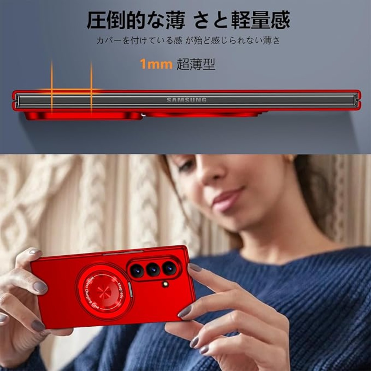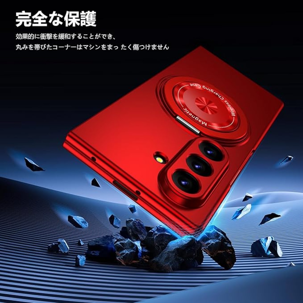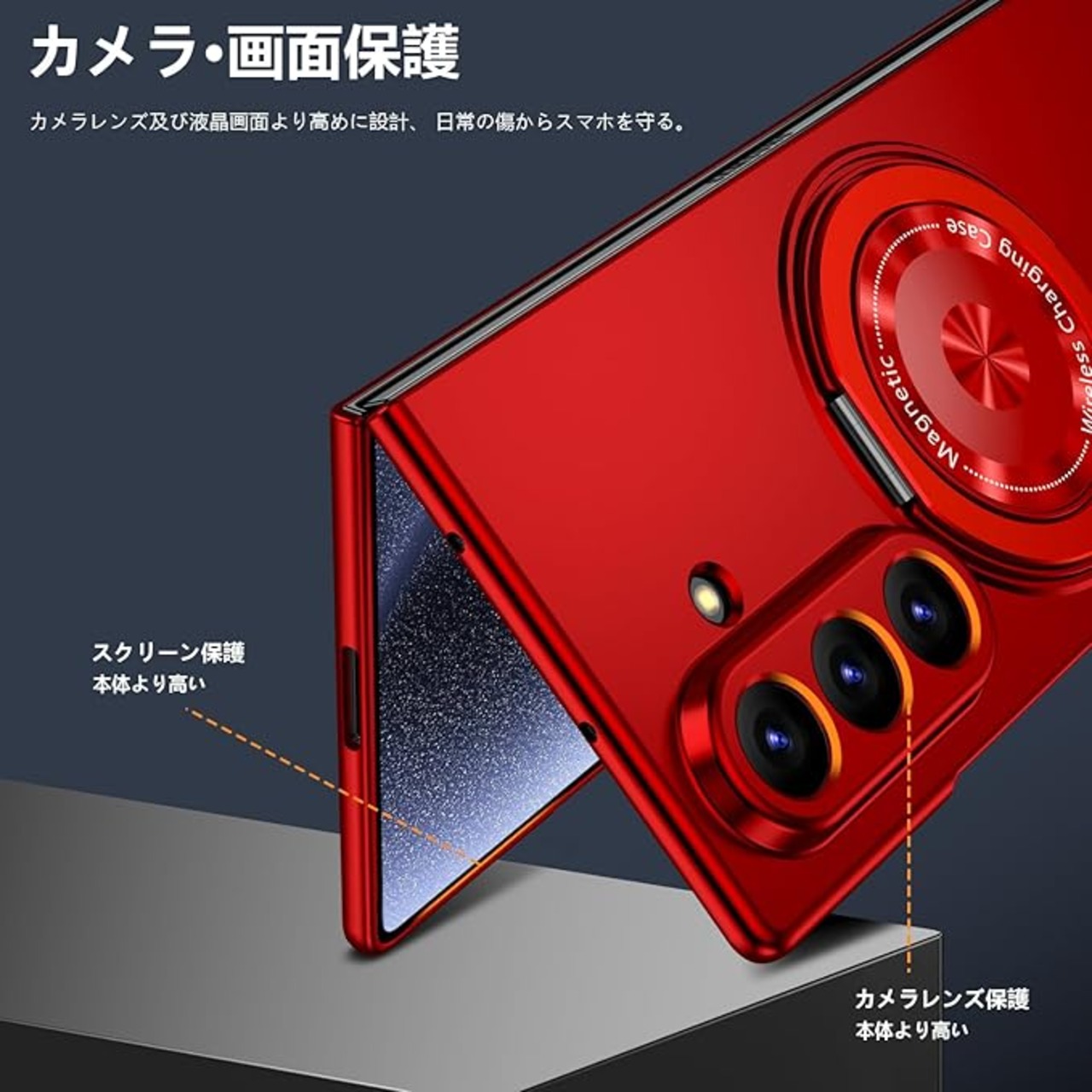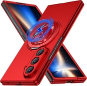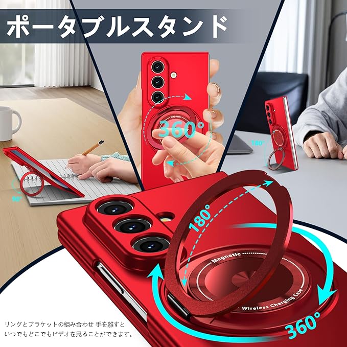 Galaxy Z Fold 7 用 ケース マグネット搭載 リング付き 耐衝撃 PC スマホケース スタンド機能 ギャラクシー Z フォールド7 用 ハードカバー 車載ホルダー 360 回転 黄変防止 マット感 頑丈 衝撃防止 指紋防止 おしゃれ 保護カバー 赤 JMJP10-30 | KAZESHOP