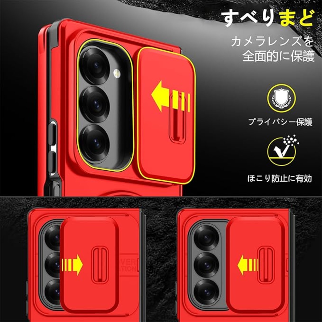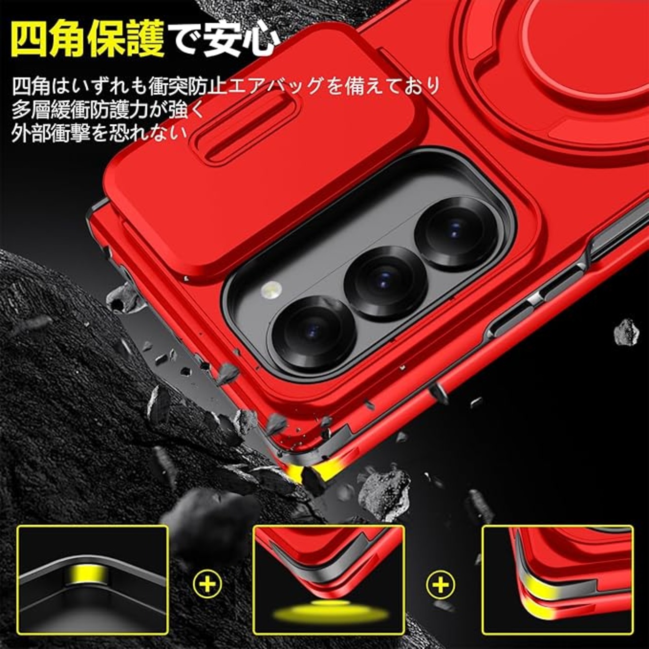 対応 Galaxy Z Fold6 用 ケース スタンド付き 耐衝撃 SC-55E カバー レンズ保護 スライドカメラカバー TPU+PC 軽量 滑り止め 落下保護 スタンド機能 車載ホルダー対応 ギャラクシー Z フォールド6 5G 携帯ケース 赤 R-LK-Fold6-07 | KAZESHOP