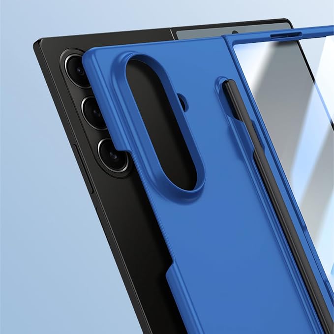 【Galaxy Z Fold7専用】超薄 超軽量ケース ペン収納付き 鋼化ガラス一体型 防指紋加工 ワイヤレス充電対応 マットの表面 カバー 人気 手帳型 360度防護 折り畳 面白い 耐汚れ 滑り防止 み おしゃれ 精緻である 衝撃吸収 かわいい フリップ Beautycatcher - 青 | KAZESHOP
