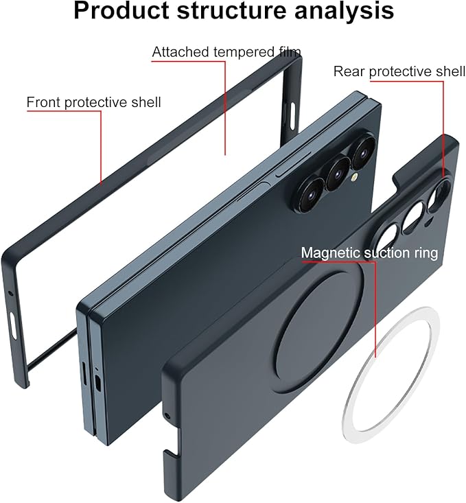 本製品はGalaxy Z Fold7専用設計の手帳型フルプロテクションケース。高密度PC素材による極薄構造が装着感を最小化し、特殊磨砂加工表面で優れた滑り抵抗性と耐指紋性を実現。前蓋一体型強化ガラスフィルムが外画面を直接保護し、カメラ周辺の微隆起構造&画面縁部段差設計で衝撃ダメージを低減。内蔵磁気吸着モジュールが各種ワイヤレス充電器と完全互換。物理ボタンの独立配置と精密避空処理で機能性を最適化し、3ステップ着脱システムで取り付け容易。