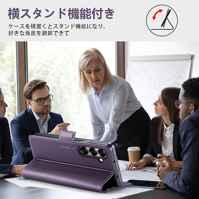 【収納機能&横スタンド機能付き】 ケース側にはカード収納3箇所、フリーポケットが1箇所あります、名刺、クレジットカード、定期券の収納に優れています。カード、建物、地下鉄またはその他の交通機関へのアクセスのために定期的にカードをスワイプする人に最適です。横置きスタンド機能が付いて、好きな角度で動画鑑賞や読書などを楽しめます