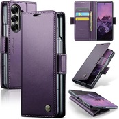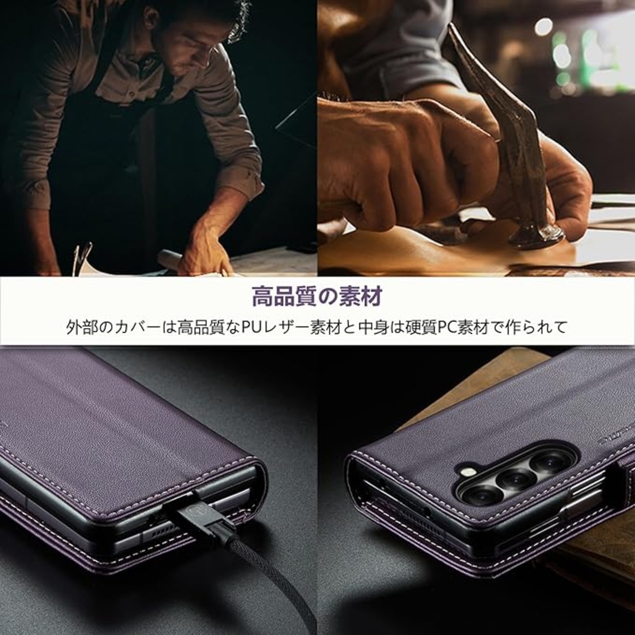 Samsung Galaxy Z Fold 7 対応 ケース 手帳型 PUレザー 携帯便利 ギャラクシーZフォールド7 保護カバー 衝撃防止 擦り傷防止 全面保護 磁気バックル付き スタンド機能付き カード収納 コイン収納 実用性高 携帯カバー レトロ galaxy z fold7 用 手帳型ケース パープル | KAZESHOP