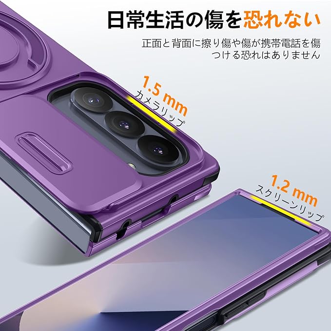 Galaxy Z Fold 6 用 ケース リング付き スライド式カメラカバー 隠しスタンド SC-55E 耐衝撃 スタンド機能 縦横両対応 車載ホルダー PC TPUバンパー 防塵 人気 落下防止 滑り止め 指紋防止 サムスン ギャラクシー Z フォールド6 5G カバー 紫 MJJ-1065-01-07 | KAZESHOP