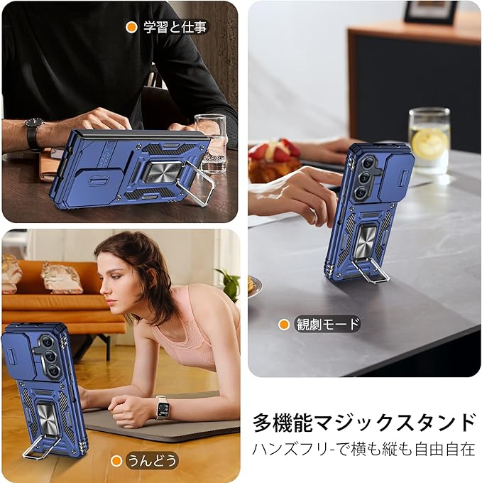 【スタンド機能】リングに指を1本通すことで、片手でスマホを操作でき、落下を防止することができます。ケースを横置きにするとスタンド機能になり、持たず動画鑑賞などを楽しむことができます。