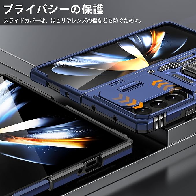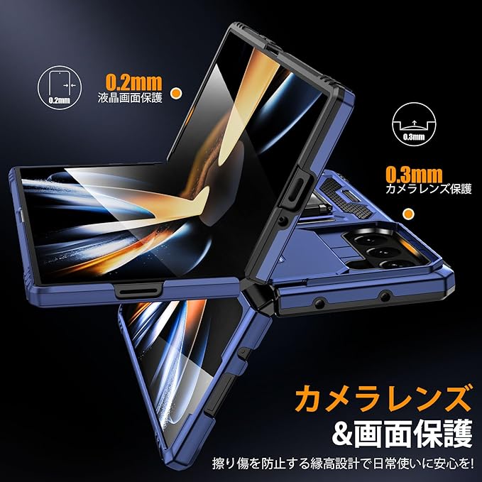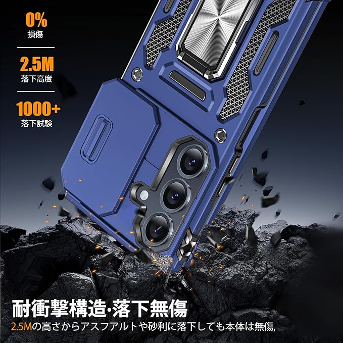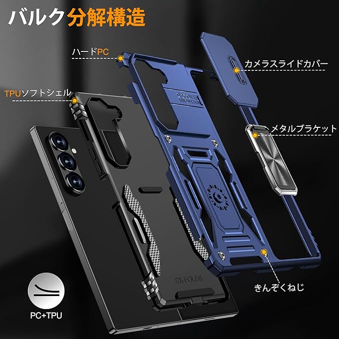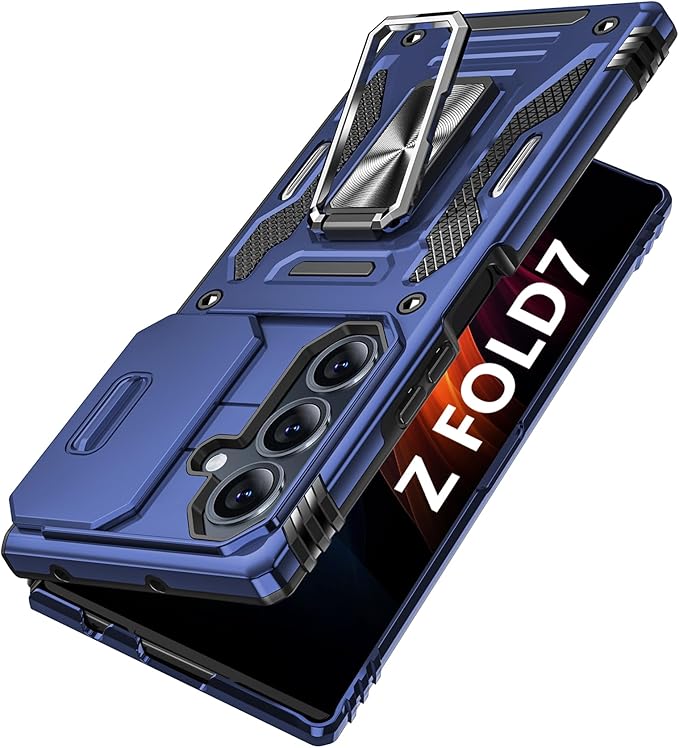 Galaxy Z Fold7 用ケース リング付き 耐衝撃 レンズ保護 TPU+PC 二重構造 バンパー 車載ホルダー対応 360 回転 スタンド機能 スマホカバー ギャラクシーゼット フォールド7 用ケース 一体型 携帯カバー 青 J12-129 | KAZESHOP
