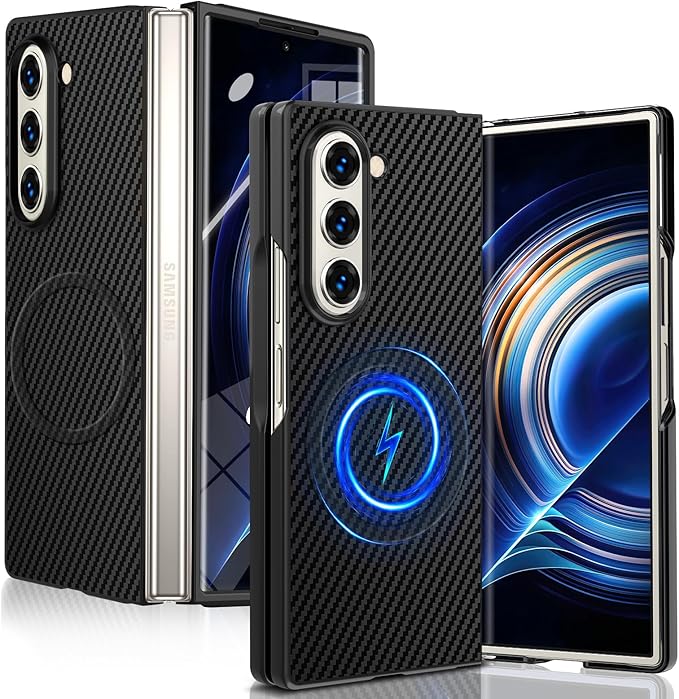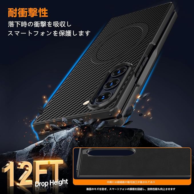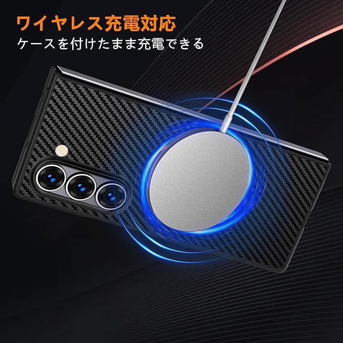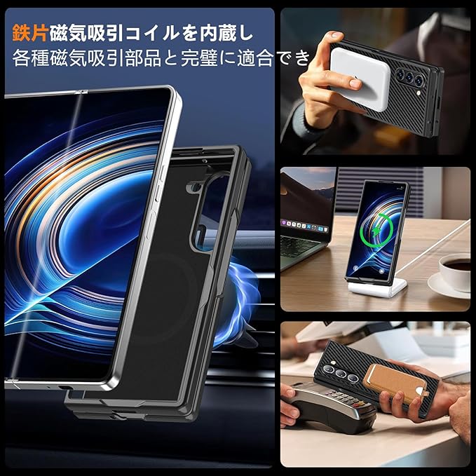Galaxy Z Fold 7 用 ケース 炭素繊維テクスチャ 薄型 軽量 耐衝撃 PC 素材 ワイヤレス充電対応 おしゃれ 指紋防止 防塵 傷防止 人気 折り畳み ギャラクシー Z フォールド7 5G 用 携帯便利カバー ブラック (黒) MD-TXCX-04-01 | KAZESHOP