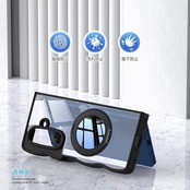 【波滑り止め】側面に滑り止め設計を採用し、フレーム部分の波のテクスチャが効果的に摩擦力を高める。操作ミスによるスマートフォンの落下を防ぐだけでなく、手になじむグリップ感を実現し、使用時の安全性を高めています。
