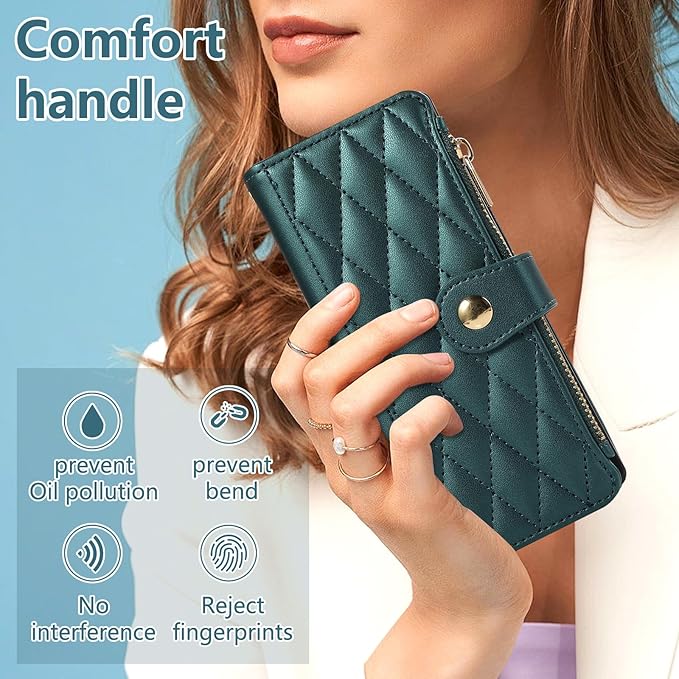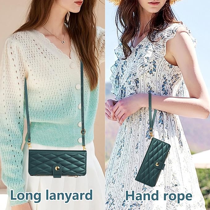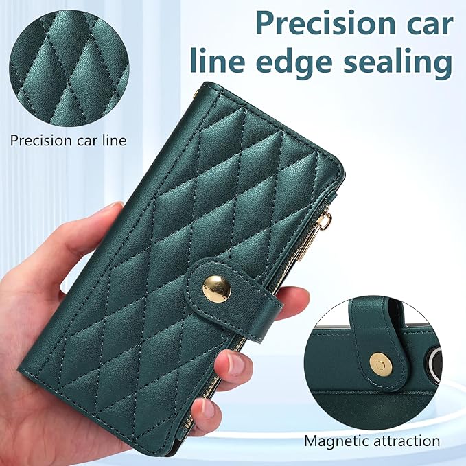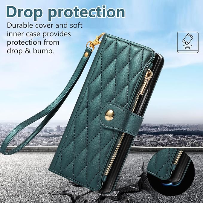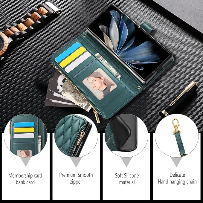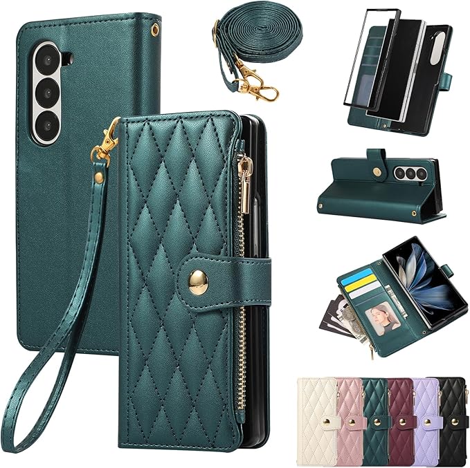 for Galaxy Z Fold7 ケース 手帳型 ギャラクシーZ Fold7 ケース ショルダー SC-56F / SCG34 スマホケース ひし形柄 ギャラクシー Z フォールド7 カバー 人気 女性 ぎゃらくしー z fold 7 スマホカバー 肩掛け カード収納 ジップ付き財布 小銭入れ 横置き機能 シンプル お洒落 携帯ケース (ダークグリーン) | KAZESHOP