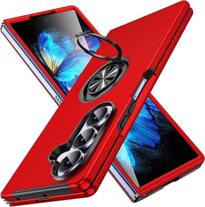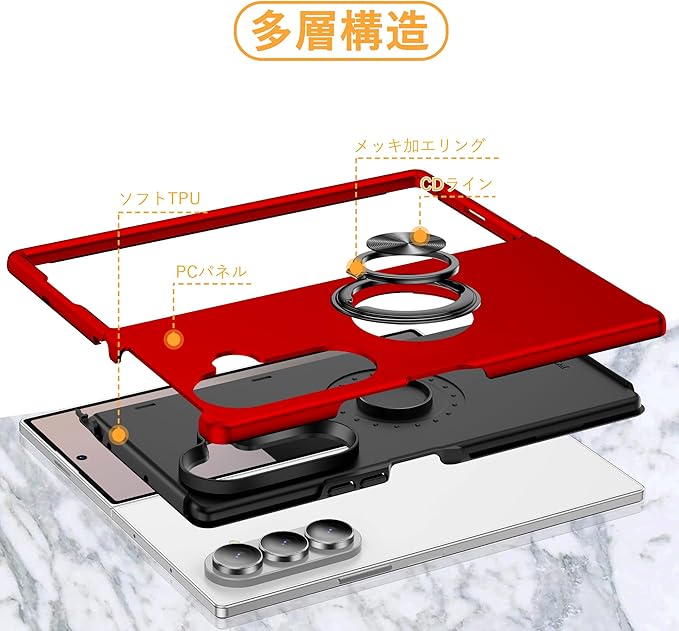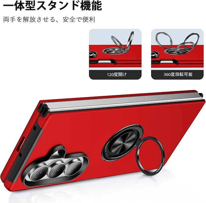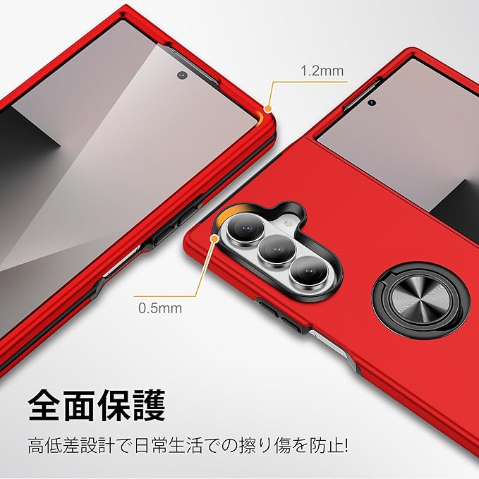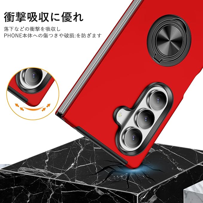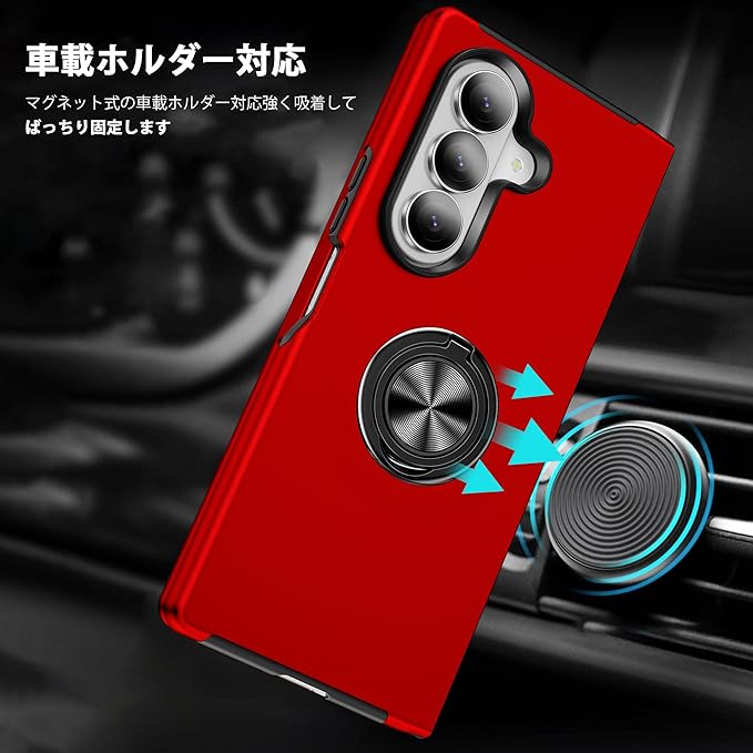 Galaxy Z Fold7 対応 ケース リング付き TPU 耐衝撃スマホケース マグネット式車載ホルダー スタンド機能 薄型 ギャラクシーzフォールド7 SC-56F/SCG34 対応 カバー カメラ保護 衝撃吸収 指紋防止 黄変防止 ストラップホール 一体型 四隅滑り止め 手触り良い 保護カバー 赤 SJ15.331 | KAZESHOP