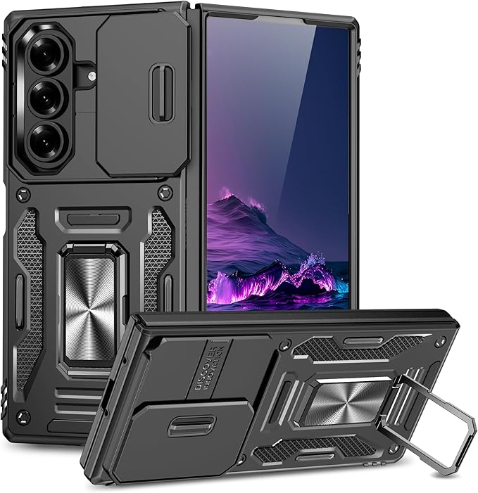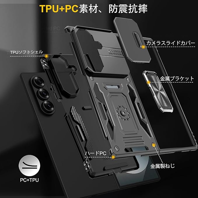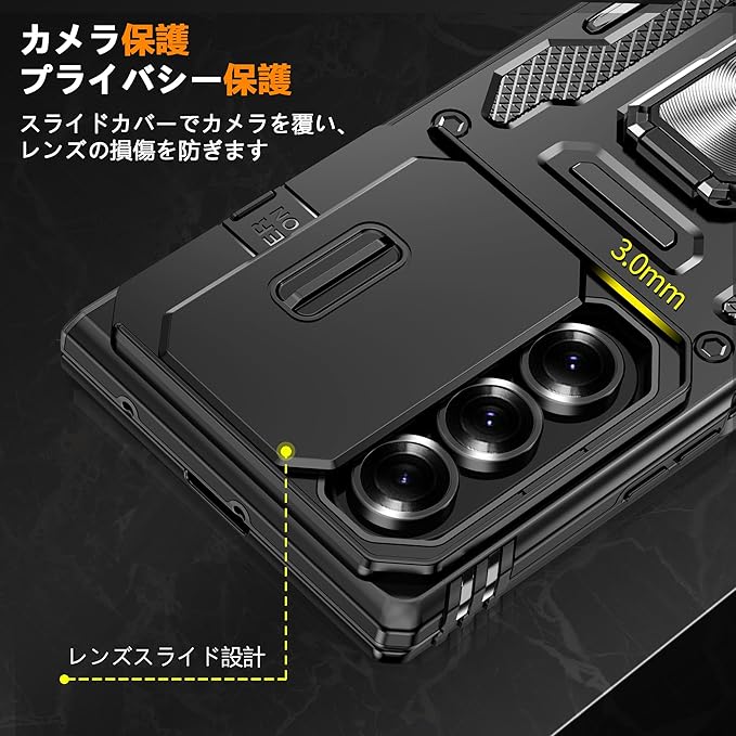 適合 Galaxy Z Fold7 用ケース リング付き 耐衝撃 衝撃吸収 tpu 薄型 擦り傷防止 薄型 シリコン スタンド機能 車載ホルダー対応 二重構造 PC バンパー ギャラクシー Z フォールド7 5G スマホケース 360 回転 おしゃれ 人気 携帯カバー (黒)Q46-KJZH-Fold7-HEI | KAZESHOP