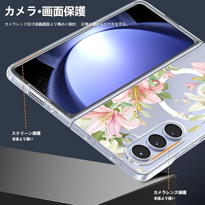 Galaxy Z Fold4 用 ケース マグネット搭載 クリア 耐衝撃 花柄 磁気カバー 可愛い PC 薄型 軽量 ワイヤレス充電対応 ギャラクシーZ フォールド4 5G SC-55C SCG16 用 スマホケース ハード おしゃれ 黄変なし 手触り良い シンプル 耐久 人気 保護ケース フラワー JMJP8-7 | KAZESHOP