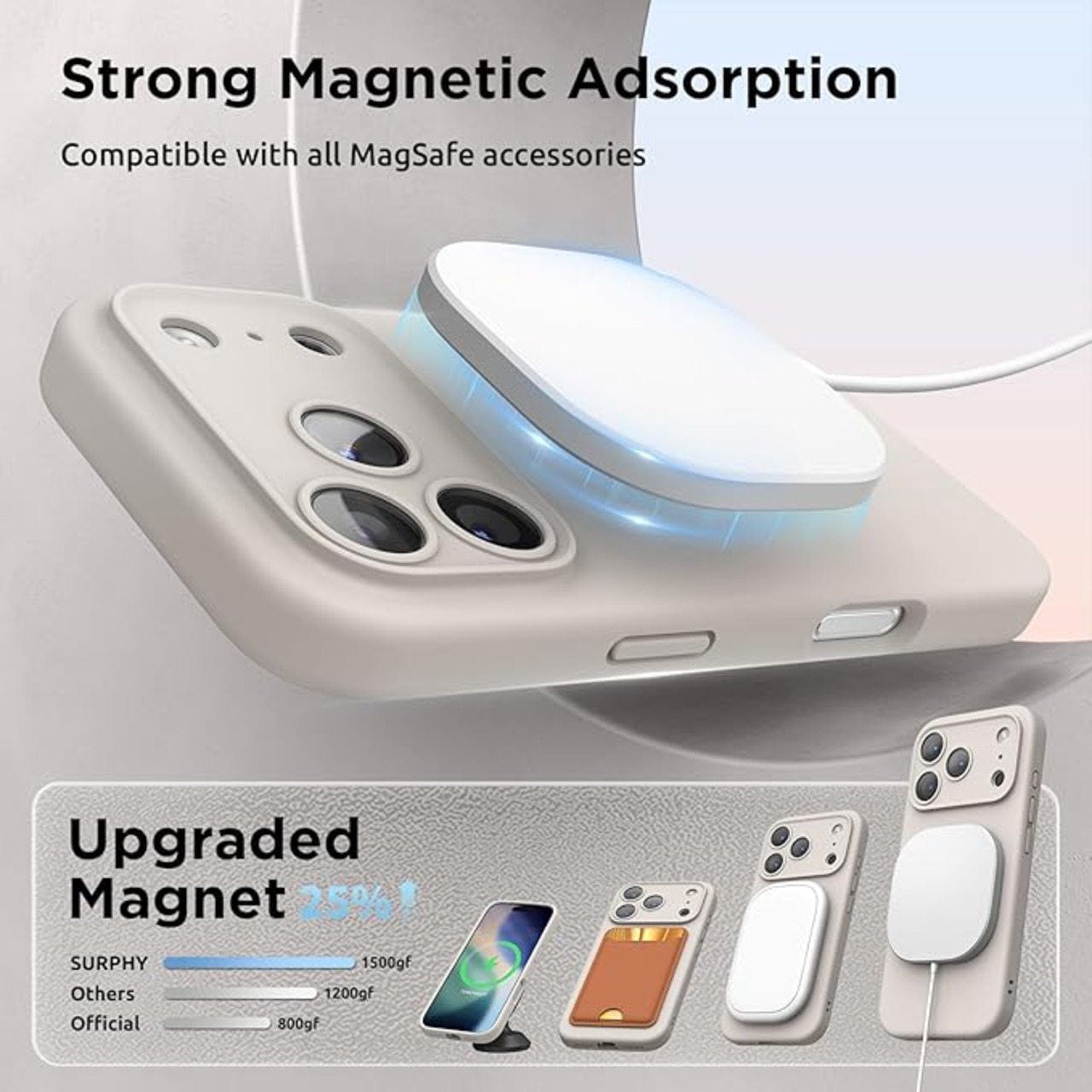 SURPHY iPhone 17 Pro Max 用ケース シリコン MagSafe対応,6.9インチ対応(2025) スマホケース iPhone 17 Pro Max(カメラの全面保護) マグネット搭載 アイフォン17 プロ マックス用ソフトカバー(ストーングレー) | KAZESHOP