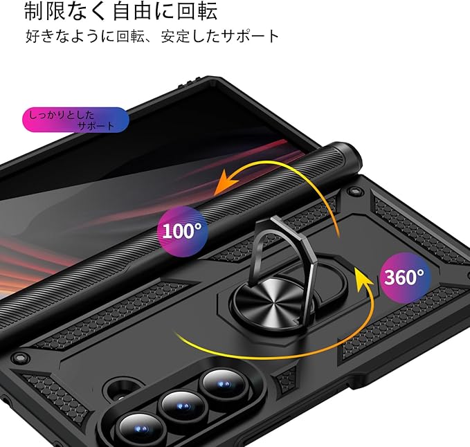 Galaxy Z Fold6ケーススタンド機能対応&リング付き:Fold6ケースを付けでテーブルに置くと、スタンドに機能対応、まだリング付きで一指式リング、片手で携帯を操作できまして、使用が便利です。