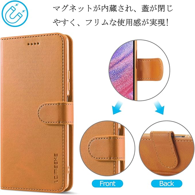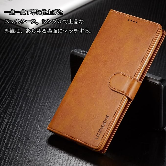 【高級PUレザーメ 柔らかいTPU】肌感PUレザー +柔軟なTPUカバーと組み合わせ、厳選された革を採用しており、目に見える高級感と抜群な、肌のような手触り感、長時間使っても、手に汗が出てもケースは変なにおいが出てきません。スマホ本体はめ込み部分はな柔らかいTPU(シリコン)ケースです。TPU素材を使用したソフトカバーにより、軽量と耐衝撃を兼ね備えました。また、柔らかいTPUカバーは取り付け・取り外しが簡単で、スマホ本体への損傷の心配ありません。