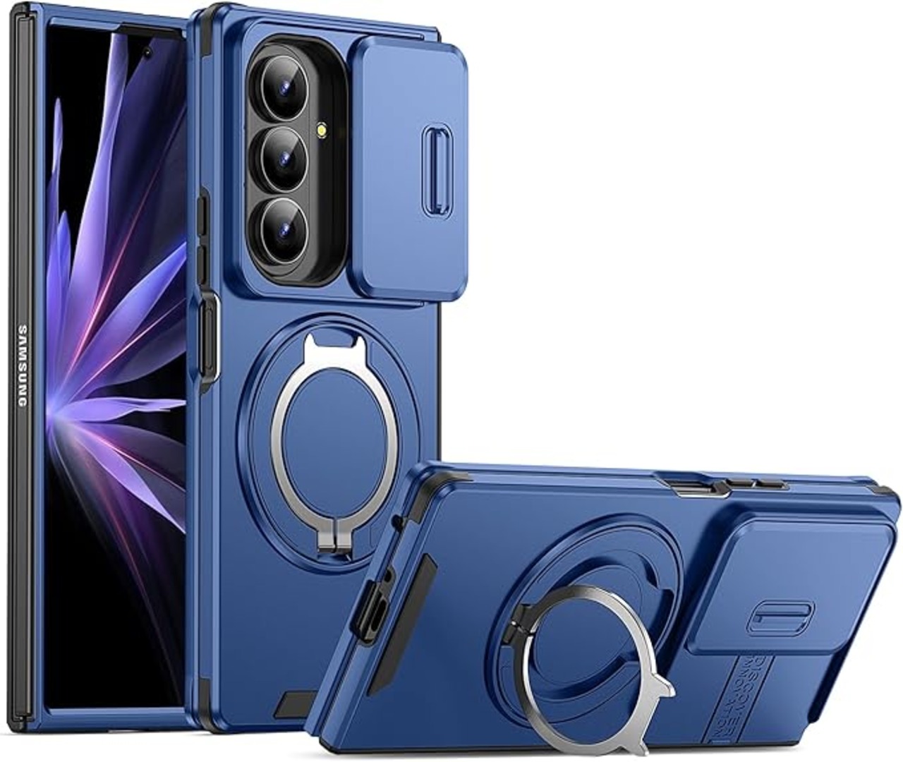 Galaxy Z Fold 7 対応 ケース 【横縦両立・多機能360度回転スタンド】 リング 耐衝撃 薄型 TPU+PC 車載ホルダー レンズ保護 フィット感 防指紋 おしゃれ ストラップホール付き 落下防止 防塵 ギャラクシーzフォールド7 対応 カバー 8.2インチ ブルー JMJP15-8 | KAZESHOP