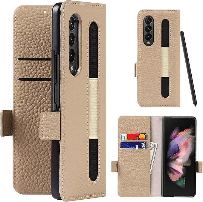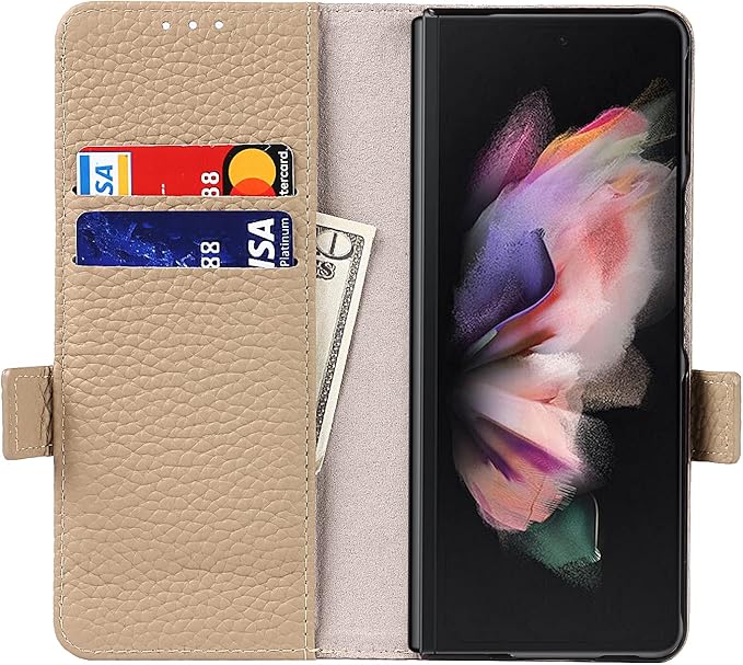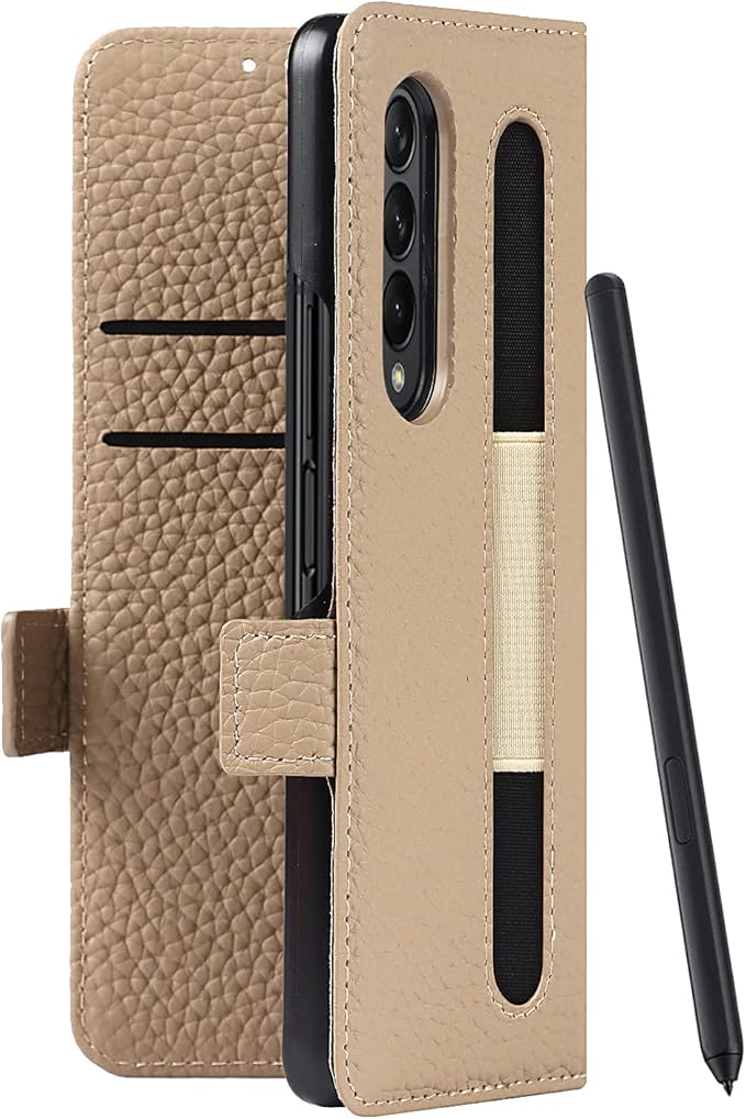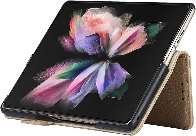 【本革カバー・全面保護】表層には高品質の本革で作られた samsung galaxy z fold3 5g ケースで、本革テクスチャの仕上げで滑りにくく、指紋、油分なども付きにくい。中にはソフトなTPUケースが付き、通常の携帯カバーのようにsamsung galaxy z fold3 5gの背面や縁側を保護することではなく、液晶画面やカメラレンズまでも全面保護してくれます