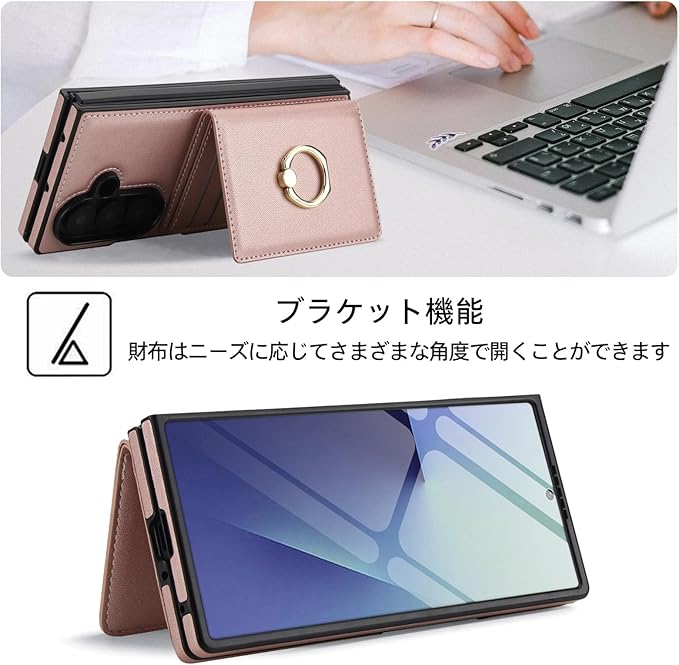 多機能:このギャラクシーZ Fold7 ケース 手帳型用ケースには、小銭入れ、ウィンドウカードホルダー、複数のカードスロット、スナップオンフラップが装備されており、重要なカードを完全に保護します。マグネット式の縦開きウォレットケースにはキックスタンド機能があり、特別なデザインです。背面のフラップを使用して、キックスタンドとして水平に置くことができます