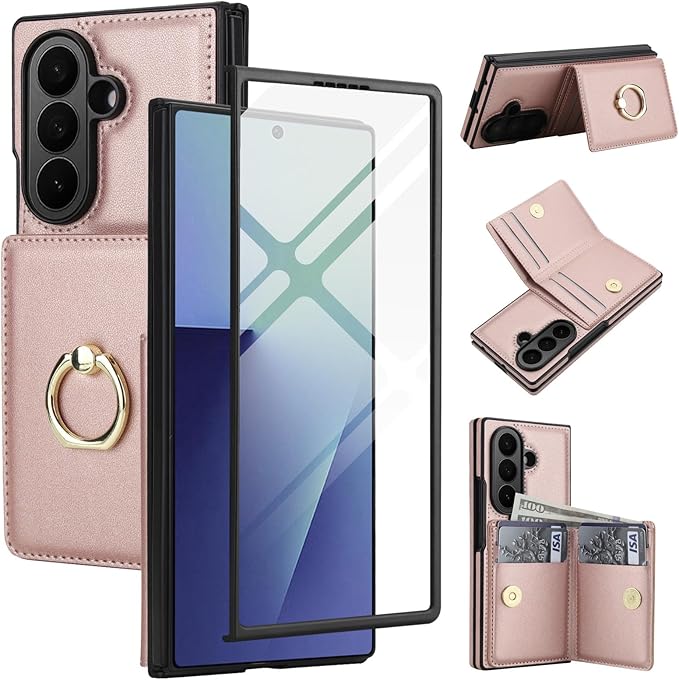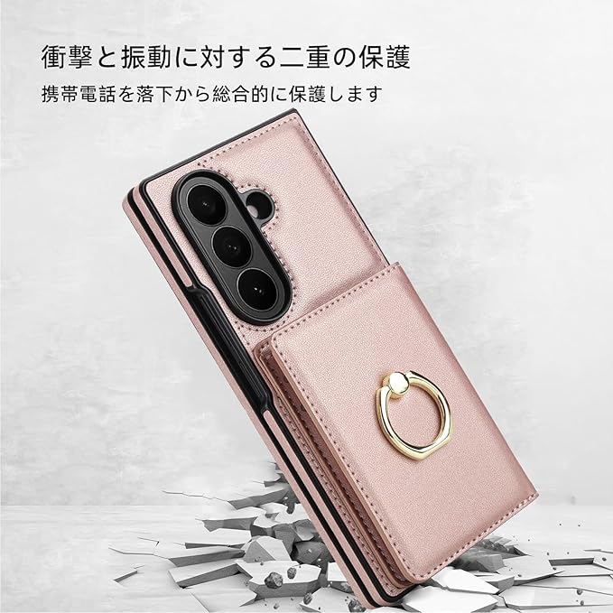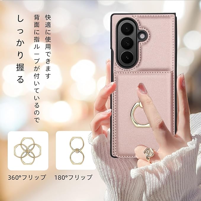 For Samsung Galaxy Z Fold 7 ケース 手帳型 ギャラクシーZフォールド7 / SC-56F / SCG34 スマホケース リング付き 背面カード収納 ZFold7 携帯カバー スタンド機能 高级PUレザー RFIDブロック機能 おしゃれ 防水 耐摩擦 耐衝撃 リング - ゴールデンピンク | KAZESHOP