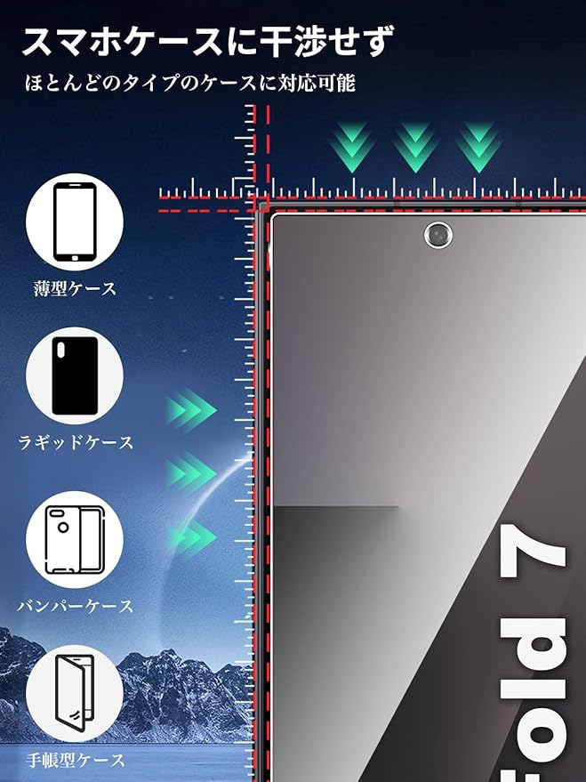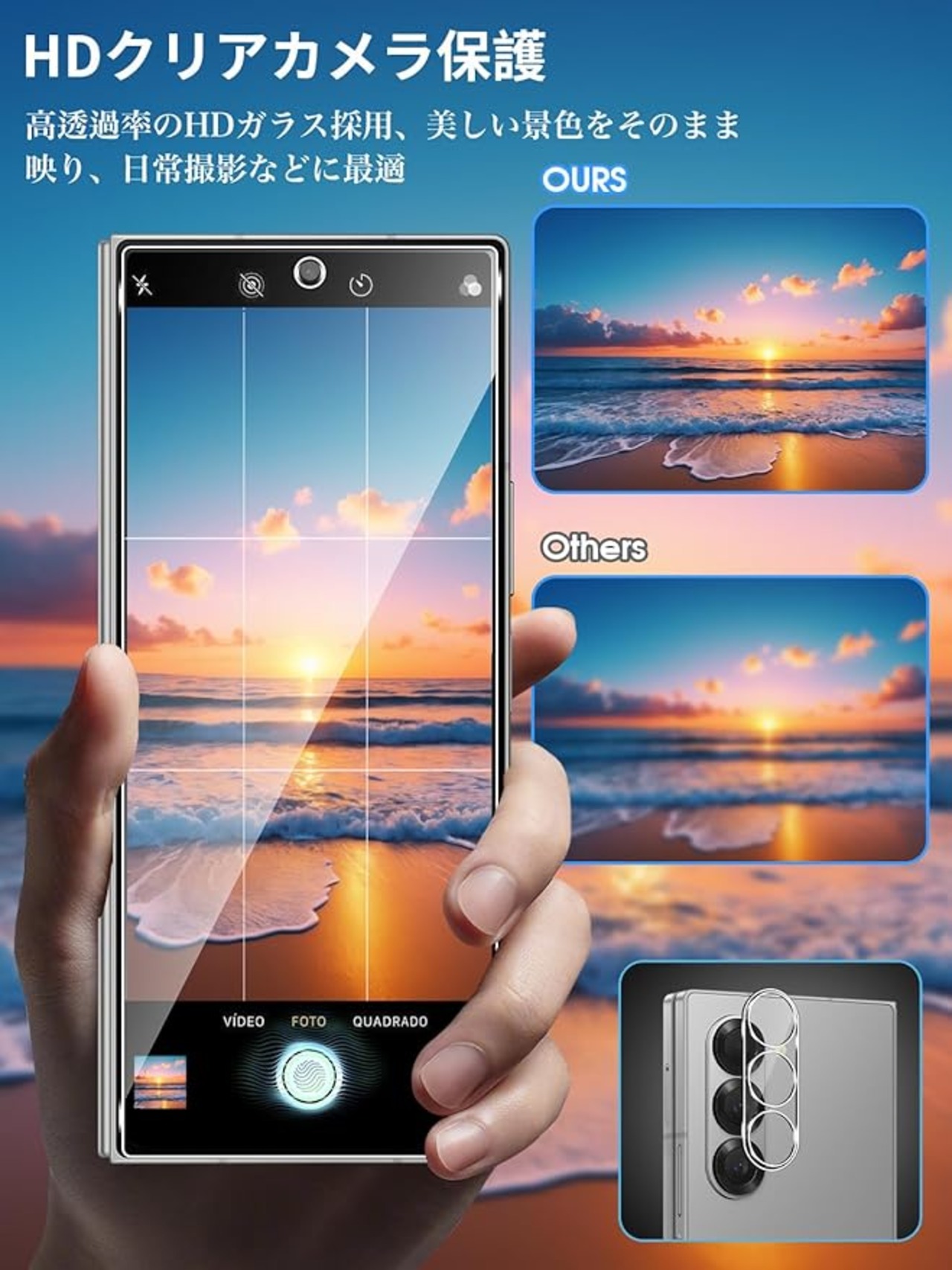 【適用機種】Samsung Galaxy Z Fold7 SC-56F 対応の保護フィルム(2枚)と背面フィルム(2枚)とレンズフィルム(2枚)です。スマホの液晶画面やカメラレンズどちらも保護できます。