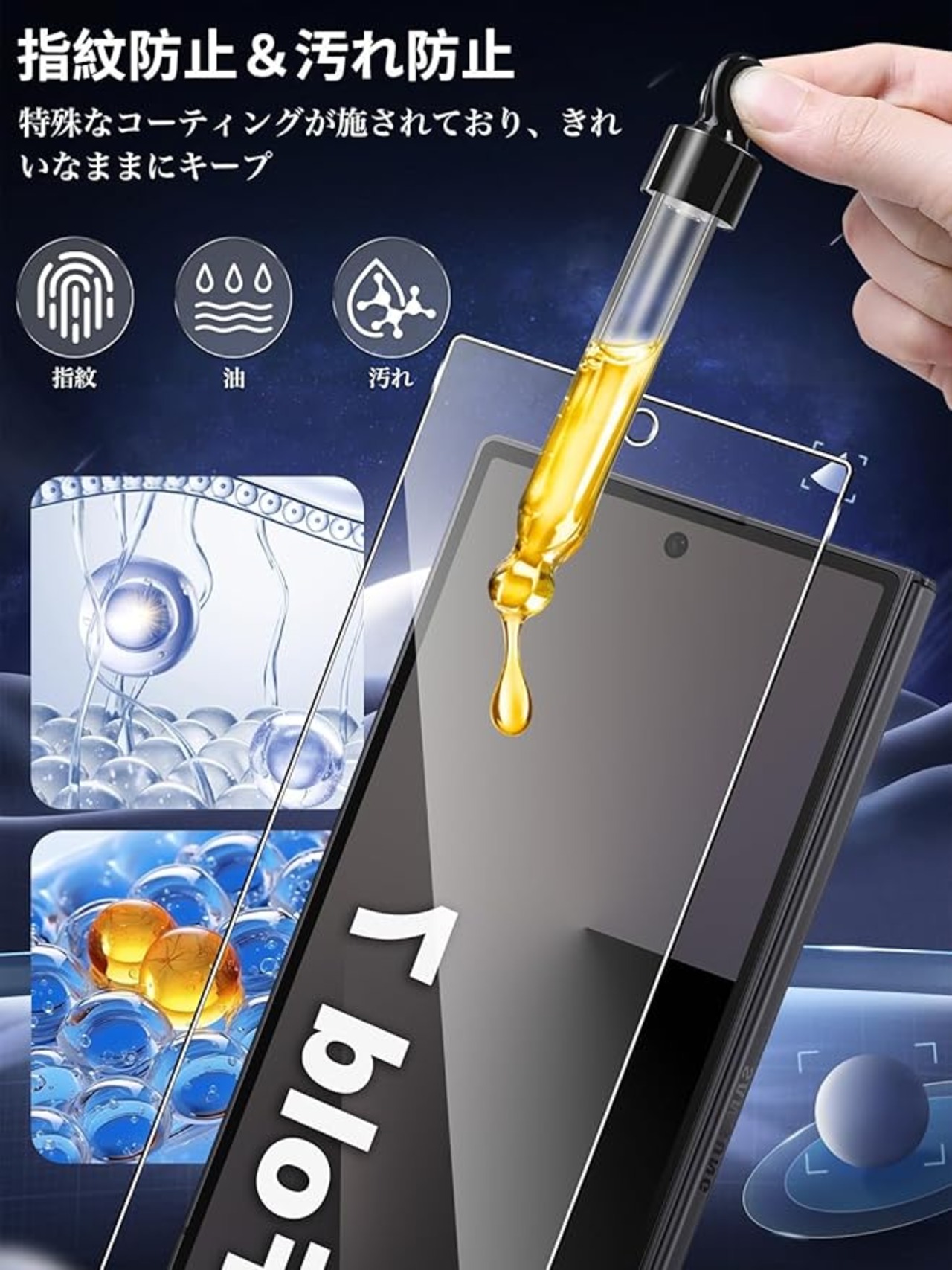 【特殊コーティング加工】保護フィルムは先端コ一ティングにより撥水撥油と指紋防止機能があり、長い時間スマホを使っても液晶画面がスムーズなタッチ感を保てます。手汗・水滴・油汚れなどが付着しにくいですので、爽やかな手触り感ができます。