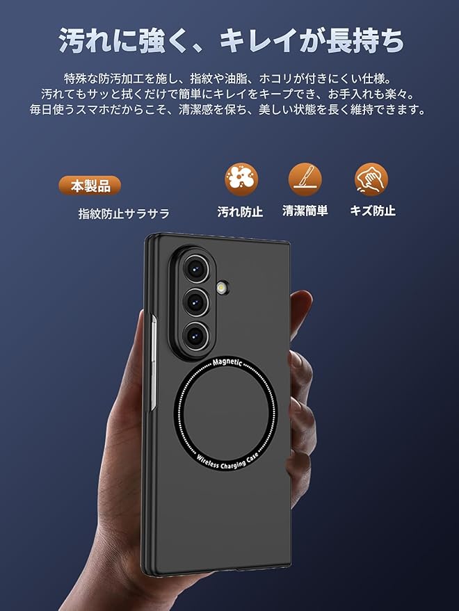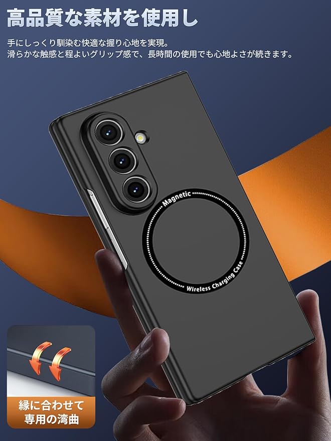 Samsung Galaxy Z Fold7 用 ケース 薄型 スマホケース SpinoArmor 指紋防止 擦り傷防止 耐衝撃カバー 滑り止め 傷防止 磁吸機能 携帯便利 Samsung Galaxy Z Fold7 対応(ブラック) | KAZESHOP