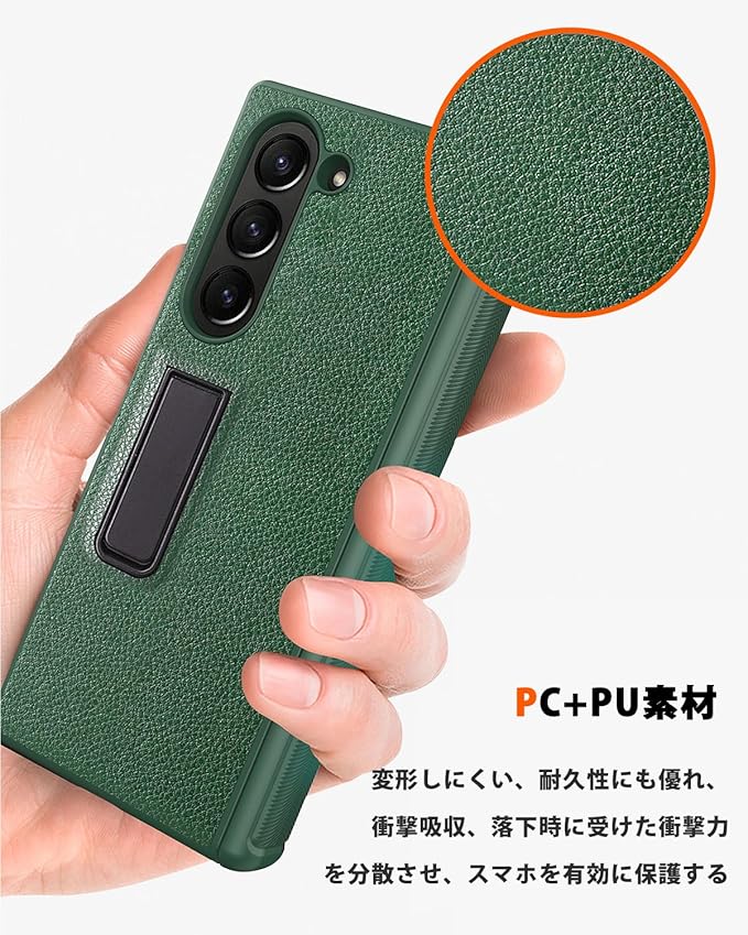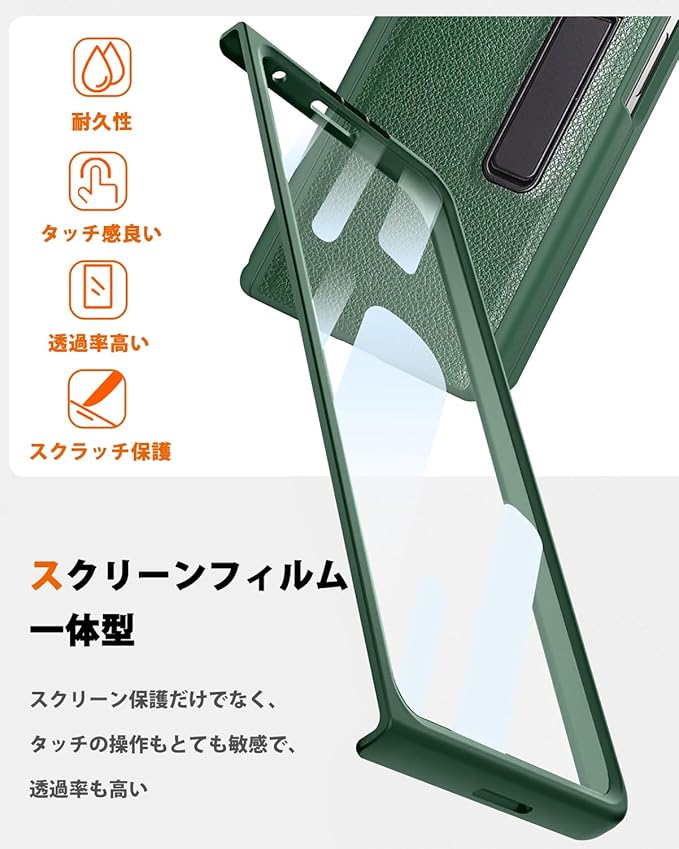 NINKI適応galaxy z fold 7 ケース [SC-56F|SCG34] ヒンジ保護 スタンド機能 PCフレーム+PU革 擦り傷防止 折り畳み式 男性向け 人気 液晶フィルム付き 落下保護 精密にアクセス 耐衝撃 ワイヤレス充電対応 ギャラクシーz fold 7 カバー (グリーン) | KAZESHOP