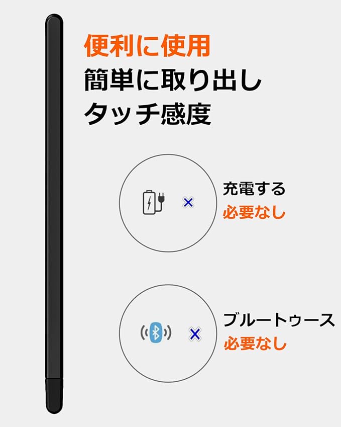 「高感度ソフトシリコンチップ/ペン先」:先端/ペン先は尖っていませんが、柔らかいシリコン素材で滑らかに書けるボールエンドとして作られており、携帯電話の画面を傷つけず、スキップしたり、遅れたりしません。