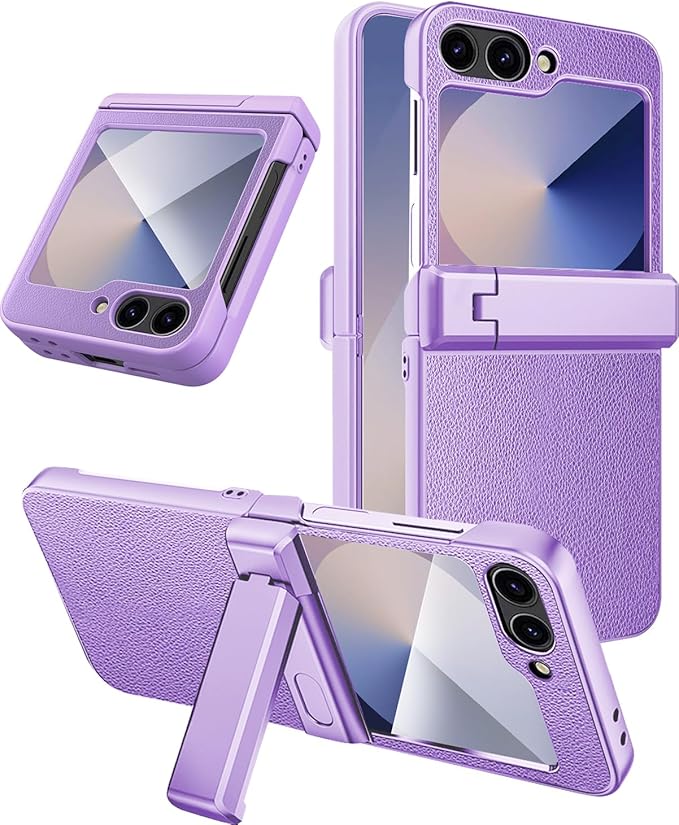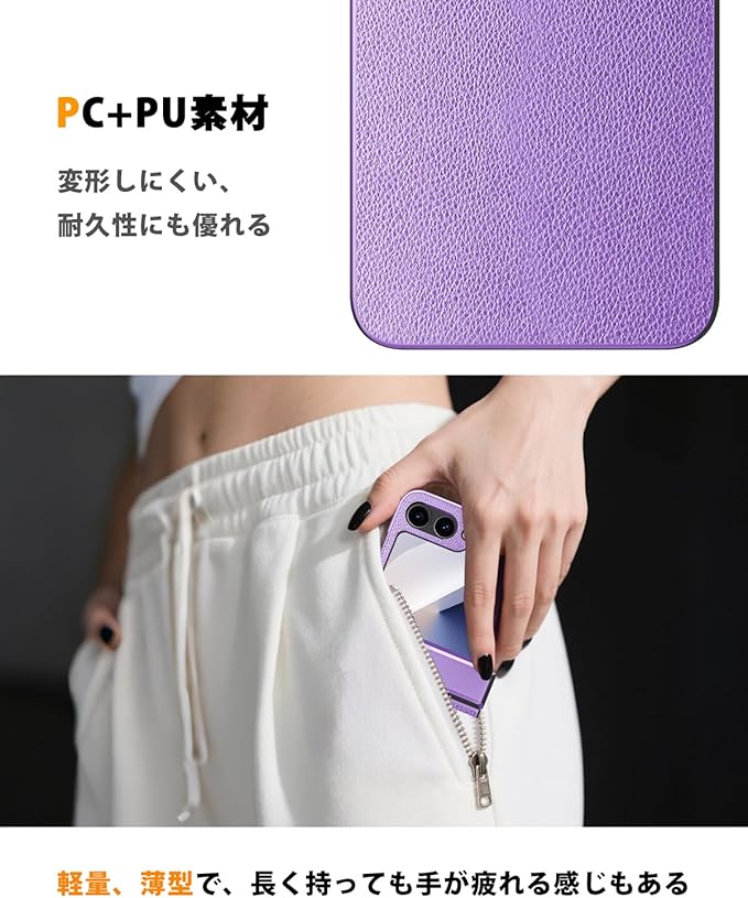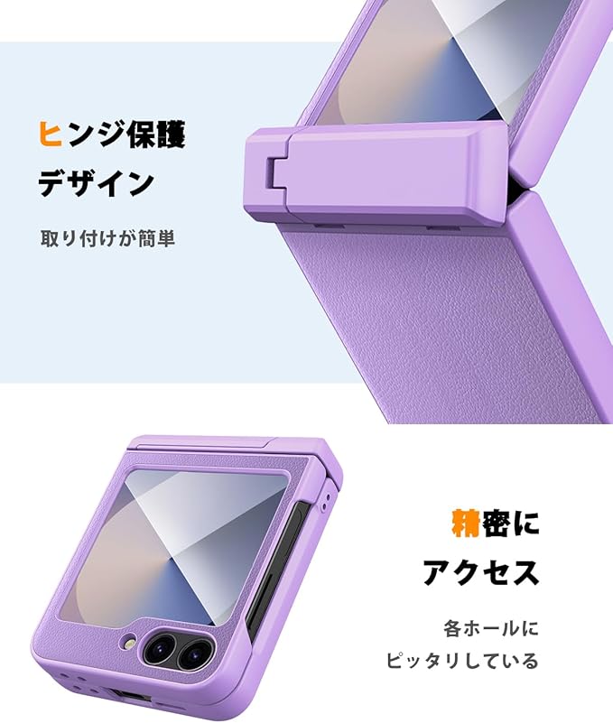 NINKI適応galaxy z フリップ7 ケース [SC-55F|SCG35] スタンド機能付き ヒンジ保護 PC+PU素材 レディース 女性対応 純正 指紋つけにくい 折り畳み式 液晶保護フィルム付き 耐衝撃 ピッタリ対応 人気 ライチ柄 galaxy z flip7 5gケース (パープル) | KAZESHOP