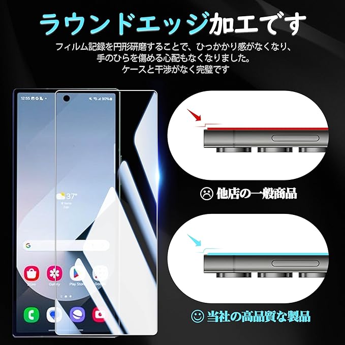 【対応機種】 Galaxy Z Fold 7 用 高透過率 ガラスフィルム。【注意】この電話の画面の端は湾曲しているため、保護フィルムのサイズが丁度良い場合、しっかりと貼り付けられず、白いエッジやシェルとの干渉などの問題があるため、保護フィルムは画面よりも小さいです。