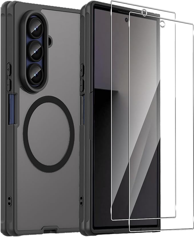 【1個+2枚セット】For Galaxy Z Fold7 ケース(1個 MagSafe対応)+ガラスフィルム(2枚) Greerass 保護ケース ガラスフィルム付き MagSafe対応 薄型 超軽量 耐衝撃 擦り傷防止 指紋 汚れ防止 手触り良い 着脱簡単 (ブラック) | KAZESHOP
