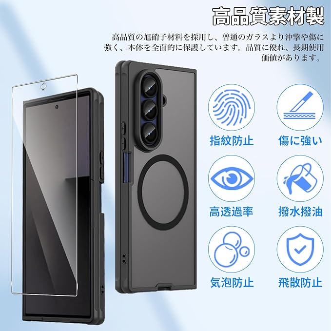 【正確な対応と充実したセット内容】このスマホケースは Galaxy Z Fold7 の画面に完全に合わせて設計されており、あらゆる細部まで正確にフィットします。パッケージには、ケース*1、ガラスフィルム*2 が含まれており、あなたが簡単に全方位の保護を始められるようになっています。